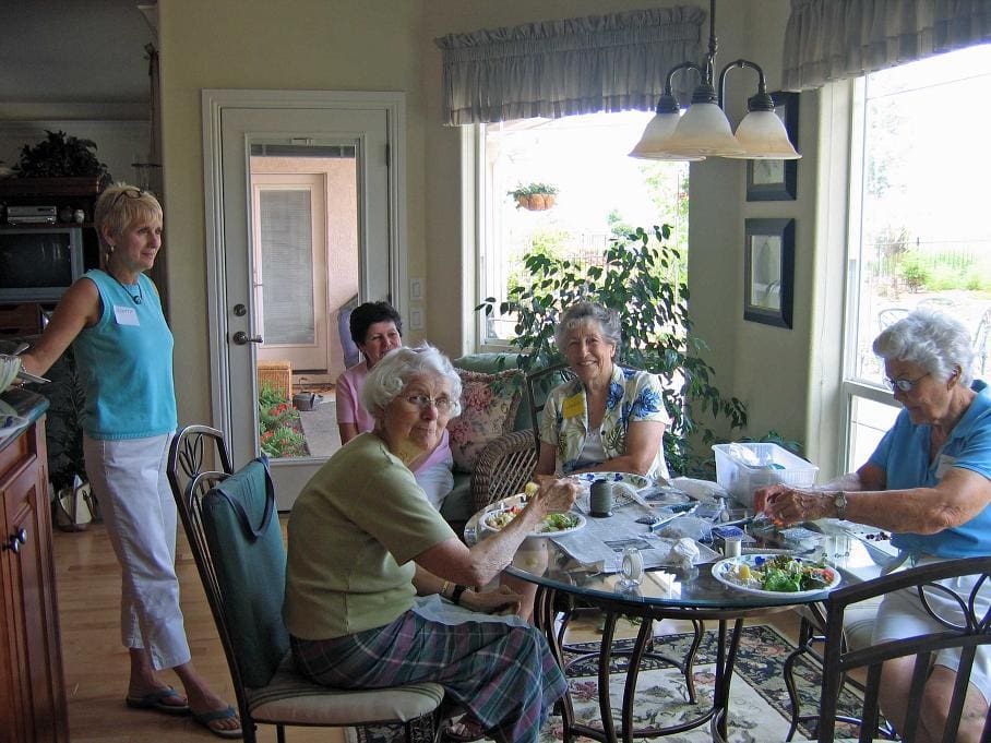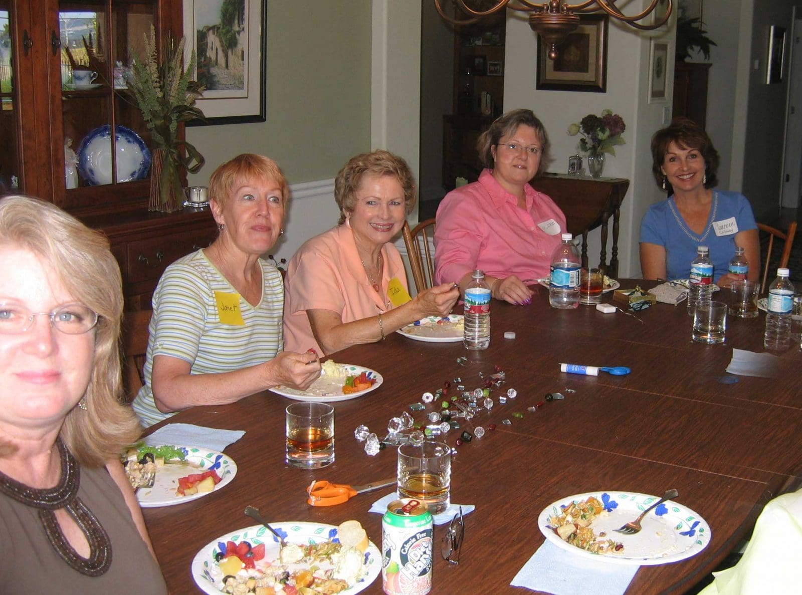 Crafts group gets together for lunch after working hard all morning making tree jewelry.