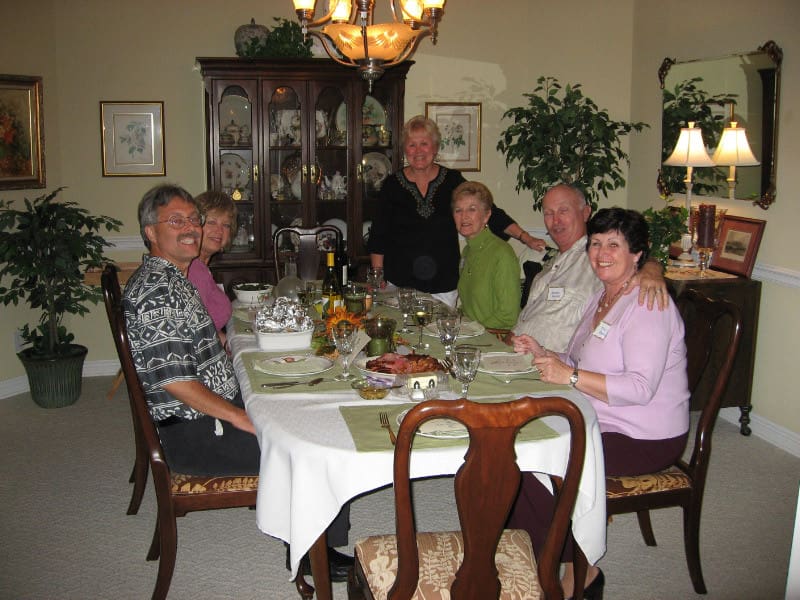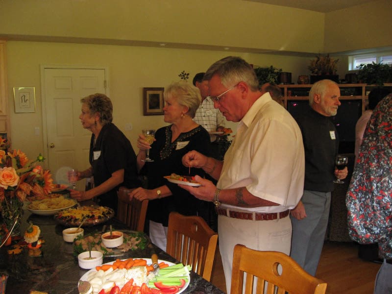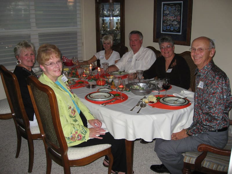We love getting together to enjoy a meal and a Progressive dinner was the perfect setting. Forty of us started off at one home for Appetizers. Then break off into small groups of 6 to progress to several homes for soup/salad. After soup/salad, we would progress to different homes to join different couples for dinner. After dinner, we would all gather at yet another home for dessert.