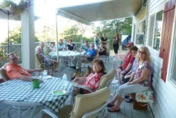 Several of us enjoying Happy Hour in the 100 degree heat on Gayle & Steve’s deck
