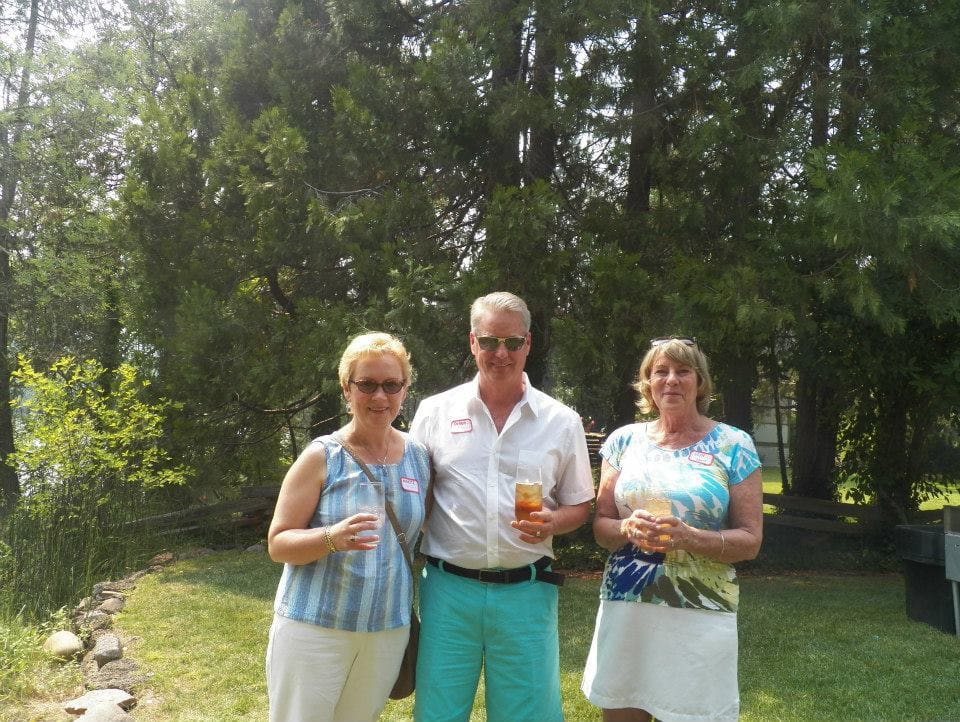 All members and their guests were invited to join us and we had 64 people in attendance. We all had a great time and the weather cooperated. The smoke was not too bad when we started out, but as the afternoon wore on the breeze came up and it turned out to be a beautiful day. Anne and Lee Kimball (the lodge owners) went out of their way to make it a successful afternoon.