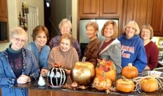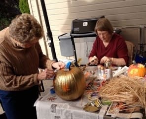 Artisans decorate pumpkins September 29, 2013 by Barbara Schmaltz Artisans met on September 25th at Maureen Callaway’s home. Ten of us painted and decorated pumpkins on the patio while the rain tried to wash us away. It was a fun morning chatting while being creative. Thank you Maureen for hosting.