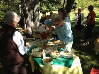 On Wednesday, September 18th we met at Carolyn Stieber’s for a “picnic in the pasture”. The variety of tasty dishes, the nice weather and the company and conversation with good friends made the event very special. Many of us think this should be an annual event.