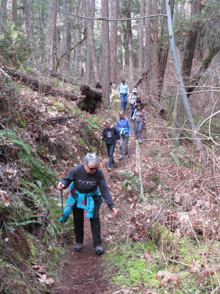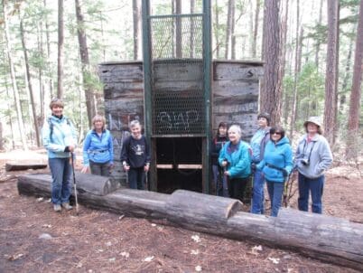 The Collings Mountain Trail near Applegate Lake is best known for the infamous Bigfoot trap. After a short 1/2-mile hike to the abandoned contraption, 10 of us continued up the moderately difficult trail through a forest of madrone, Douglas fir, mixed pine, and bigleaf maple. We enjoyed lunch at McKee Bridge Restaurant following our invigorating hike.