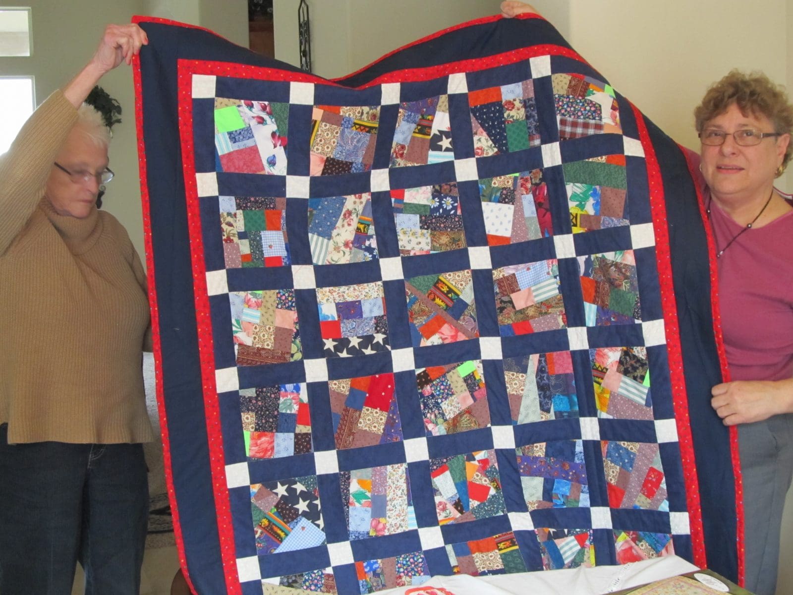 A full complement of Knotty Ladies met at Dora’s home on February 5. The Ladies welcomed Linda Townsend as our guest and Marcia and Lynn were able to join us. After admiring the beautifully set table and enjoying a delicious dessert, we got down to business. Two wounded Warrior quilts have been completed and are awaiting labels. The plan is to take them to the VA Rehab Center after our March meeting. A personalized thank you card will be sent to the quilter who donated her time and talent. The group decided to limit our future donations to handmade items (quilts, blankets, etc.) rather than cash to organizations that request a donation from us. There has been no report on how much our donation to the Humane Society brought. We were reminded that the Asante pediatric ward is in need of newborn sized quilts especially for stillborn babies. Flannel quilts are okay. The group decided to take part in the Vintage Faire from 10:00 to 4:00 on Saturday, May 10, at the Butte Creek Mill. Dora will come in costume and do some hand quilting. Members can make items to sell at our booth if they wish. Small items such as pot holders, purses, table runners, and place mats were suggested. If some members want to get together and make a wall hanging, we could conduct a raffle.