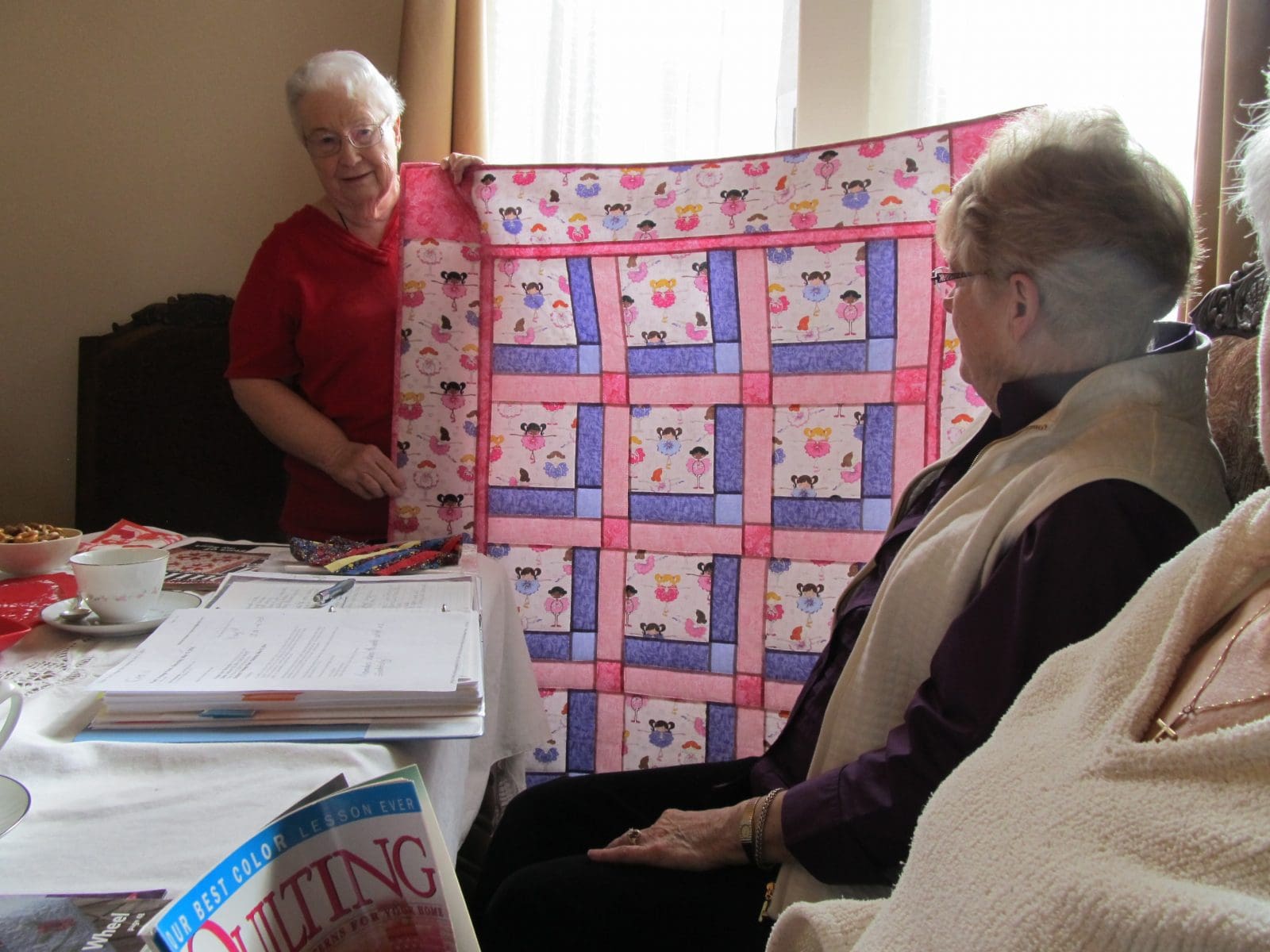 A full complement of Knotty Ladies met at Dora’s home on February 5. The Ladies welcomed Linda Townsend as our guest and Marcia and Lynn were able to join us. After admiring the beautifully set table and enjoying a delicious dessert, we got down to business. Two wounded Warrior quilts have been completed and are awaiting labels. The plan is to take them to the VA Rehab Center after our March meeting. A personalized thank you card will be sent to the quilter who donated her time and talent. The group decided to limit our future donations to handmade items (quilts, blankets, etc.) rather than cash to organizations that request a donation from us. There has been no report on how much our donation to the Humane Society brought. We were reminded that the Asante pediatric ward is in need of newborn sized quilts especially for stillborn babies. Flannel quilts are okay. The group decided to take part in the Vintage Faire from 10:00 to 4:00 on Saturday, May 10, at the Butte Creek Mill. Dora will come in costume and do some hand quilting. Members can make items to sell at our booth if they wish. Small items such as pot holders, purses, table runners, and place mats were suggested. If some members want to get together and make a wall hanging, we could conduct a raffle.