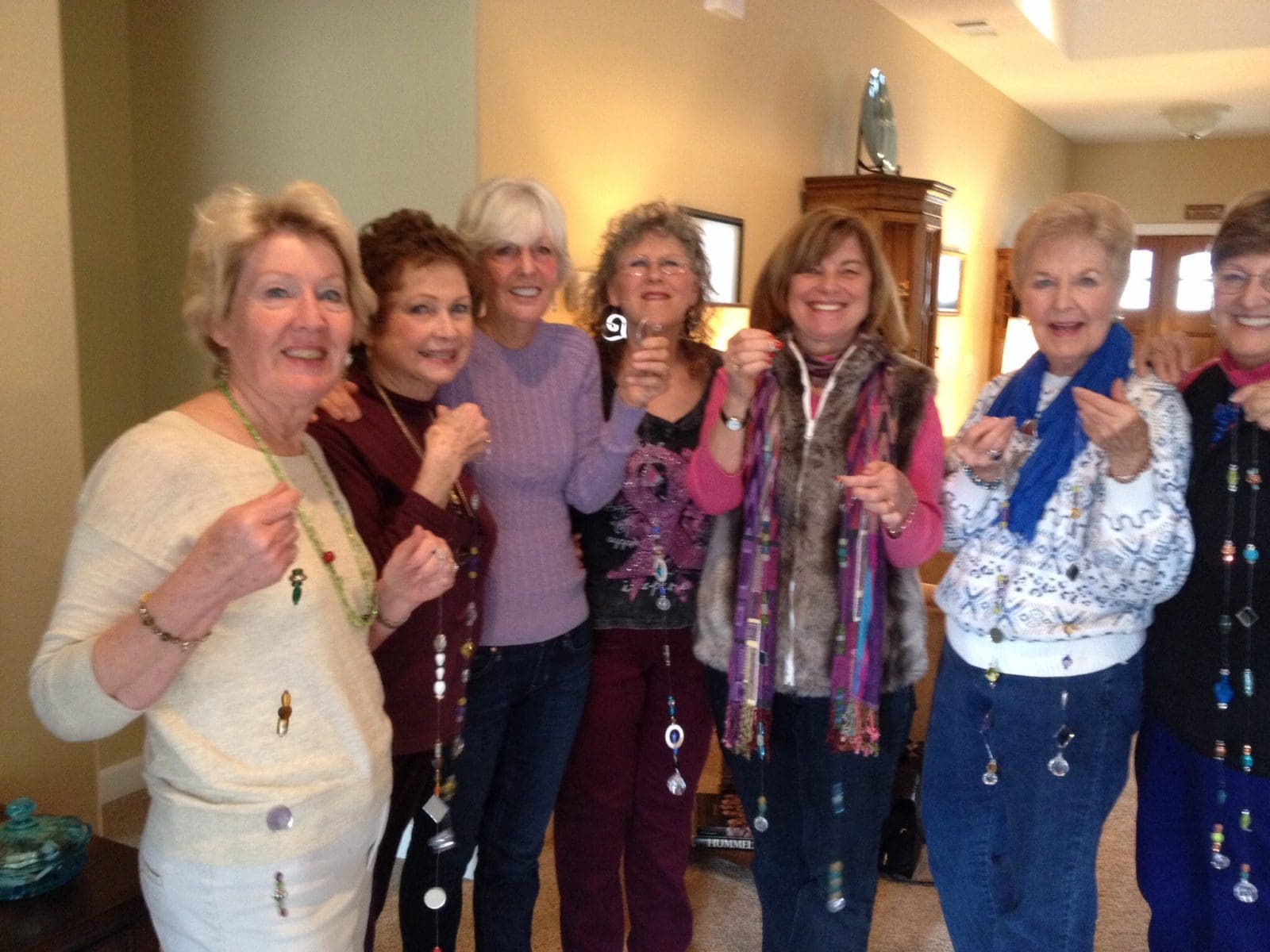 February, 2014 Artisans project March 3, 2014 by Barbara Schmaltz Artisans met at Lorie Petersen’s home and our project was making tree jewelry. Twelve ladies showed up for this event and we had fun making jewelry for our trees. All the bead strands were different and beautiful. Thank you Lorie for hosting.