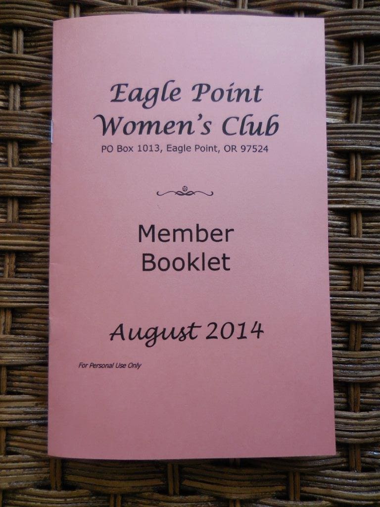 The 2014 Member Booklets are in. I will bring them to the Luncheon on Wednesday August 20th. Each member receives one booklet with their membership. You may purchase an additional booklet for only $1.00.