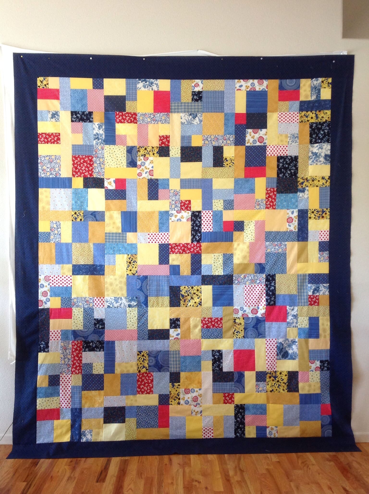 Following our participation in the Vintage Faire in May, the members of the Piecemakers decided to make a raffle quilt to help fund community education programs. The members quickly decided on a pattern and everyone contributed yellow and blue fabric. Each person made six or seven blocks, then brought them back to the next meeting to organize them into a quilt. Meeting a few extra times during the next month, the women quickly assembled the quilt and sent it off to the long-arm quilter. The quilt pattern is called “Yellow Brick Road” and the quilt was named “There’s No Place Like Home.” Raffle tickets will be sold at the August luncheon for $1.00/ticket or $5.00 for 6 tickets. The winning ticket will be selected at the luncheon.