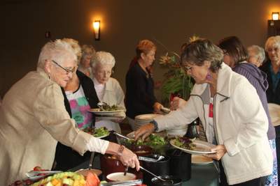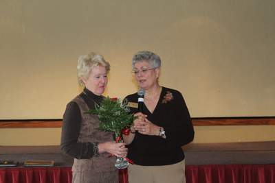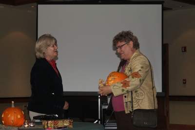 Spooktacular decorations crafted by Annette Godfrey, luncheon coordinator, and her helpers and a wonderful autumn menu were among the many highlights of the October 2014 Women’s Club luncheon at the Rogue Valley Country Club. Six new members and three guests were among the 70 women who enjoyed the program, companionship, activity sign-ups and lunch. Dirk Siedlecki, local pioneer cemetery preservationist, presented a fascinating program on the art and history to be discovered and enjoyed in old cemeteries. A beautiful slide show and lots of personal experiences were shared by Dirk with assistance from his wife, Mary. A special tribute to Janet Siedlecki was made by President, Maxine Williams. Janet is a former EPWC president and Board member and active community volunteer. She is leaving the area for a new home in New Mexico. Janet’s many contributions were honored and best wishes were expressed by all for safe travels for Janet and Lee and much happiness in the future.