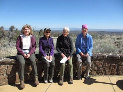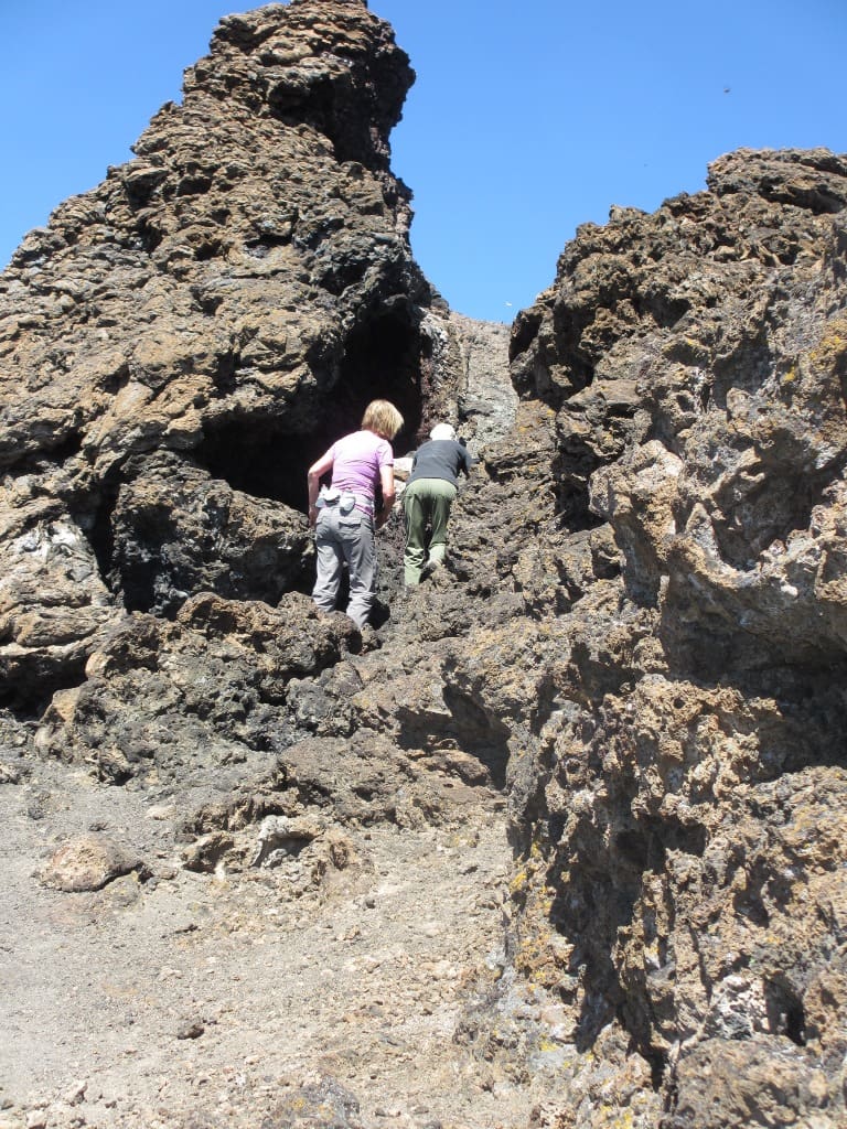 There wasn’t a dull moment for our Hiking Group at Lava Beds National Monument. Four of us explored five lava tube caves, climbed a spatter cone, hiked in a Modoc War site, and viewed and identified a variety of birds on Tulelake. Since only one cave is lit inside, we depended on our headlamps and flashlights as we walked very carefully on uneven surfaces and ducked to avoid hitting our heads. The caves vary in length and difficulty and we definitely felt most comfortable in those least challenging. There is something for everyone at this National Monument!