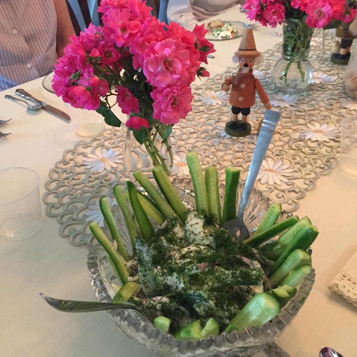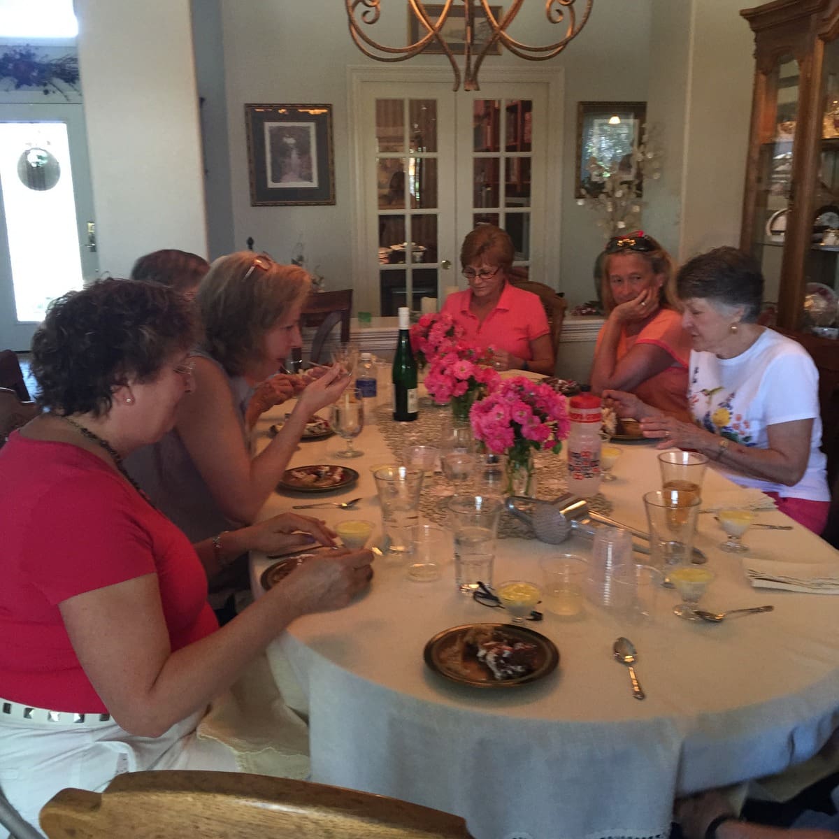 How can you go wrong with a meal starting with German beer and assorted sausages and ending with Black Forest gateau, apple strudel and vanilla/lemon cream? Janice Kabel and Susan Orr hosted a German luncheon in Janice’s welcoming home and provided some first-hand history of German cuisine. Janice’s husband is German and some of the recipes utilized for the luncheon were traditional family recipes. We were all amazed at the wide variety of ingredients and food styles ranging from light, vegetable salads to more traditional sauerbraten, rouladen, braised red cabbage and German potato salad. Recipes were discussed and shared and many will be used again. A cold glass of German Riesling wine or some of Janice’s custom-blended ginger/peach iced tea were the perfect additions to a wonderful meal. A huge thanks to Janice and Susan.