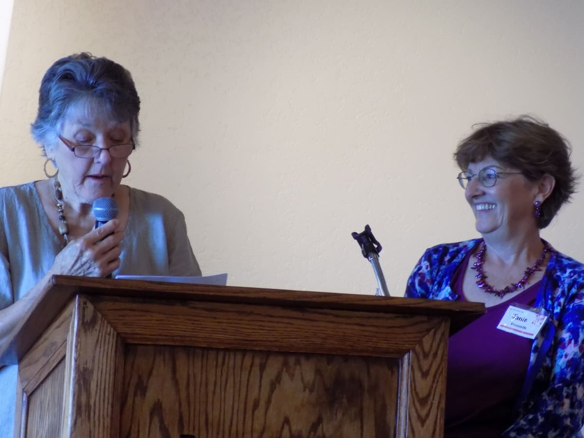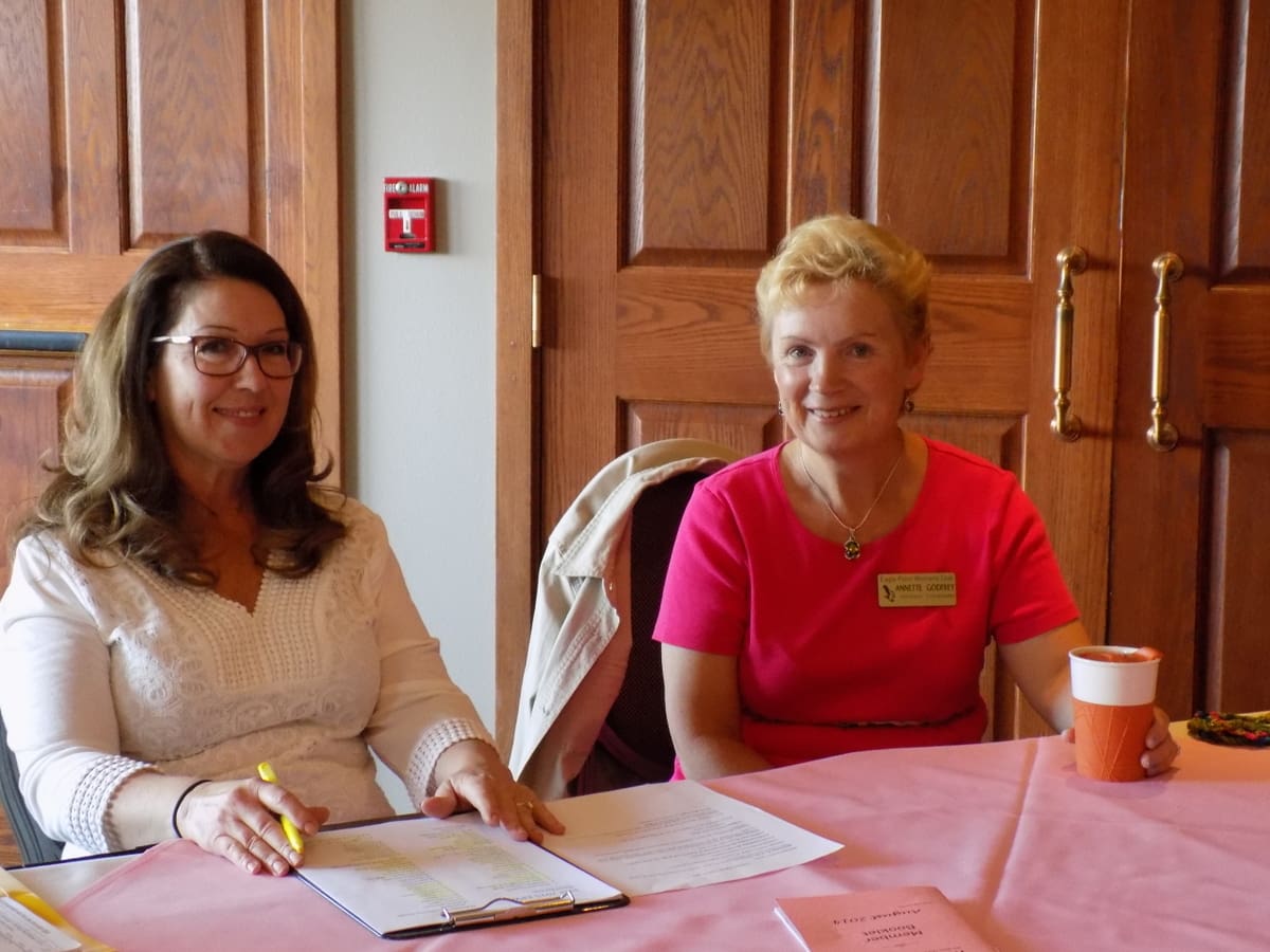 Over 60 women enjoyed a French-themed luncheon with table décor to match, had the opportunity to greet the new Club Board and to thank the outgoing Board members. The lunch buffet from chicken cordon bleu to fresh pear tart was both beautiful and scrumptious. Richard Gyuro entertained us with beautiful French melodies with his accordion. Carolyn Stieber honored both new and outgoing Board members by relating the qualities of their astrological sign to their contributions to the Club. Each received a live herb plant which related to their “sign”. A special tribute to outgoing president, Maxine Williams, was an engraved plaque which will be placed on a memorial shelf of Maxine’s choice at the Eagle Point Branch library. Maxine has presided over the Club as president for two terms of two years each. Many thanks to Maxine for her excellent work.