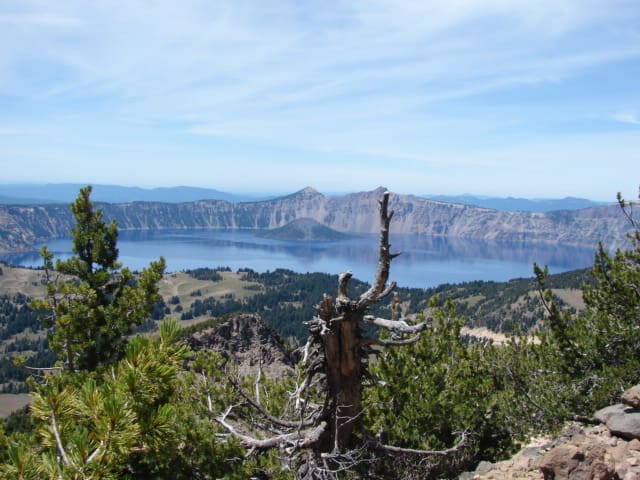 On July 17th six hikers made it to the 8929′ peak of Mt. Scott for incredible views of Mt. Shasta, Mt. McLaughlin, Mt. Thielsen, Crater Lake, Diamond Lake, Klamath Lake and maybe Mt. Bachelor or some other set of distant snowy peaks. We spotted a Bald Eagle and a pair of Rough-legged Hawks.