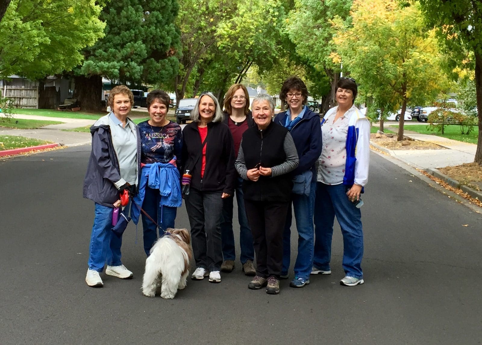 We had a wonderful time on our Eagle Point walk today (however, as you see, Ida’s dog chose not to show her face!), and four of us ended with a very good breakfast at Barbwire on Main.