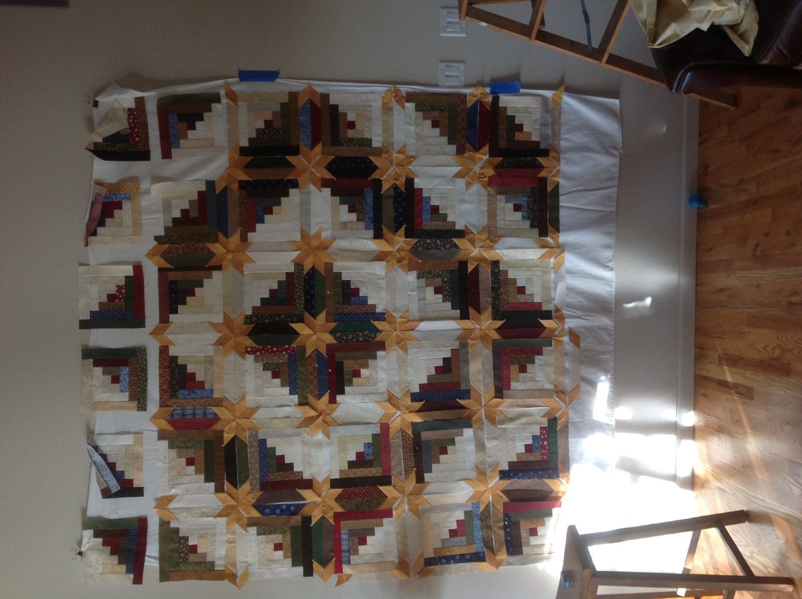 Five members of the Piecemakers and one guest met on November 4. Betty showed a baby quilt she had just completed. She also showed a Christmas tree skirt she made and shared the instructions. Linda showed photos of a Mickey Mouse themed quilt that she and Rosenelle completed for a friend. Elaine provided refreshments and after catching up on retreats attended and trips taken, the group completed plans for their December potluck and gift exchange. Afterwards they arranged blocks and sashing for their Log Cabin Stars Raffle Quilt. The next meeting/potluck will be on December 2 at 1:30 pm.