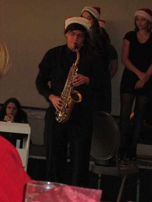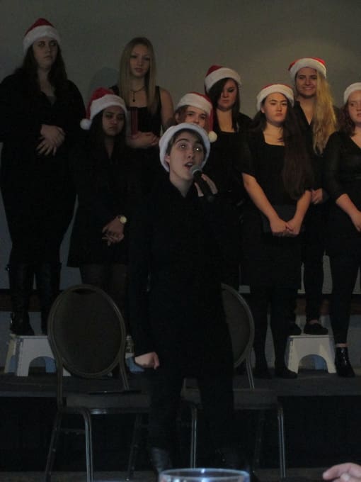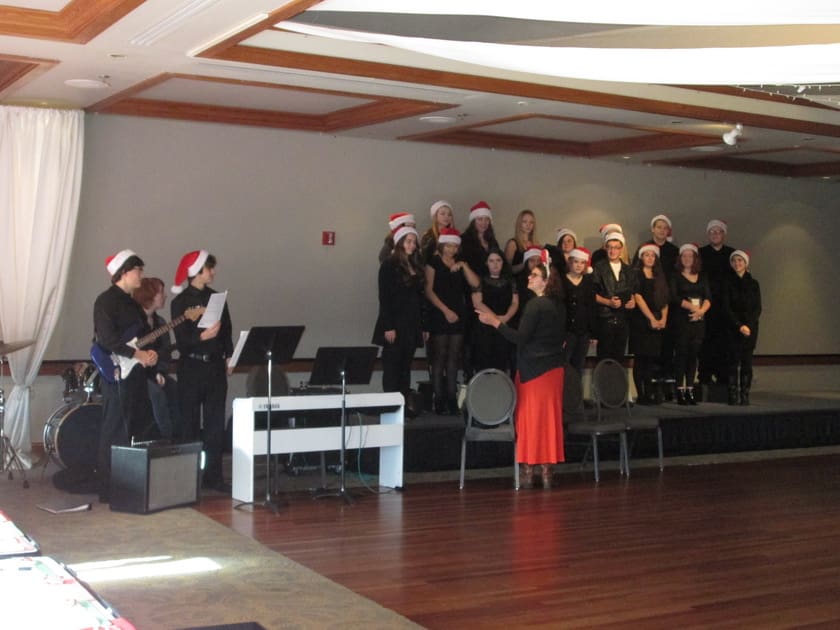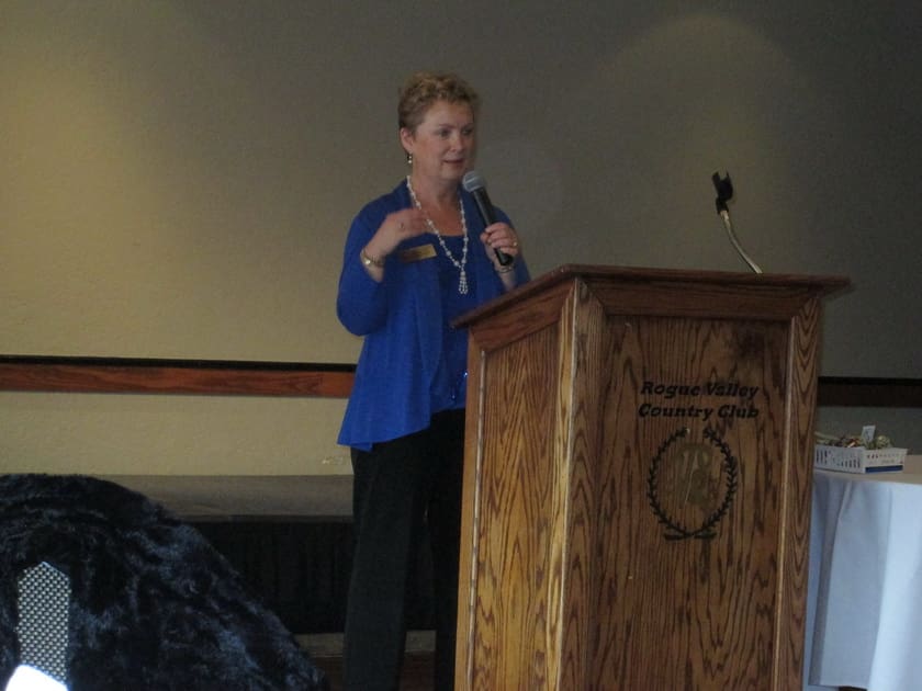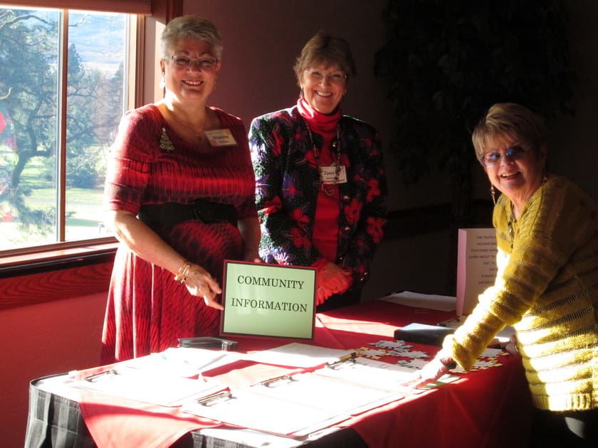 We met at the Rogue Valley Country Club for our December luncheon. The ladies were busy signing up on the Activity Sheets and also to volunteer at the Santa Shop and Secret Santa. We were entertained by 21 members of the Eagle Point High School jazz choir and combo. Under the leadership of their director, they performed some Christmas music and a few additional songs and solos of their choosing. We all enjoyed the music of these young, talented performers.