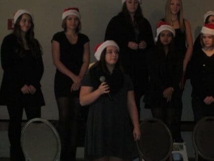 We met at the Rogue Valley Country Club for our December luncheon. The ladies were busy signing up on the Activity Sheets and also to volunteer at the Santa Shop and Secret Santa. We were entertained by 21 members of the Eagle Point High School jazz choir and combo. Under the leadership of their director, they performed some Christmas music and a few additional songs and solos of their choosing. We all enjoyed the music of these young, talented performers.