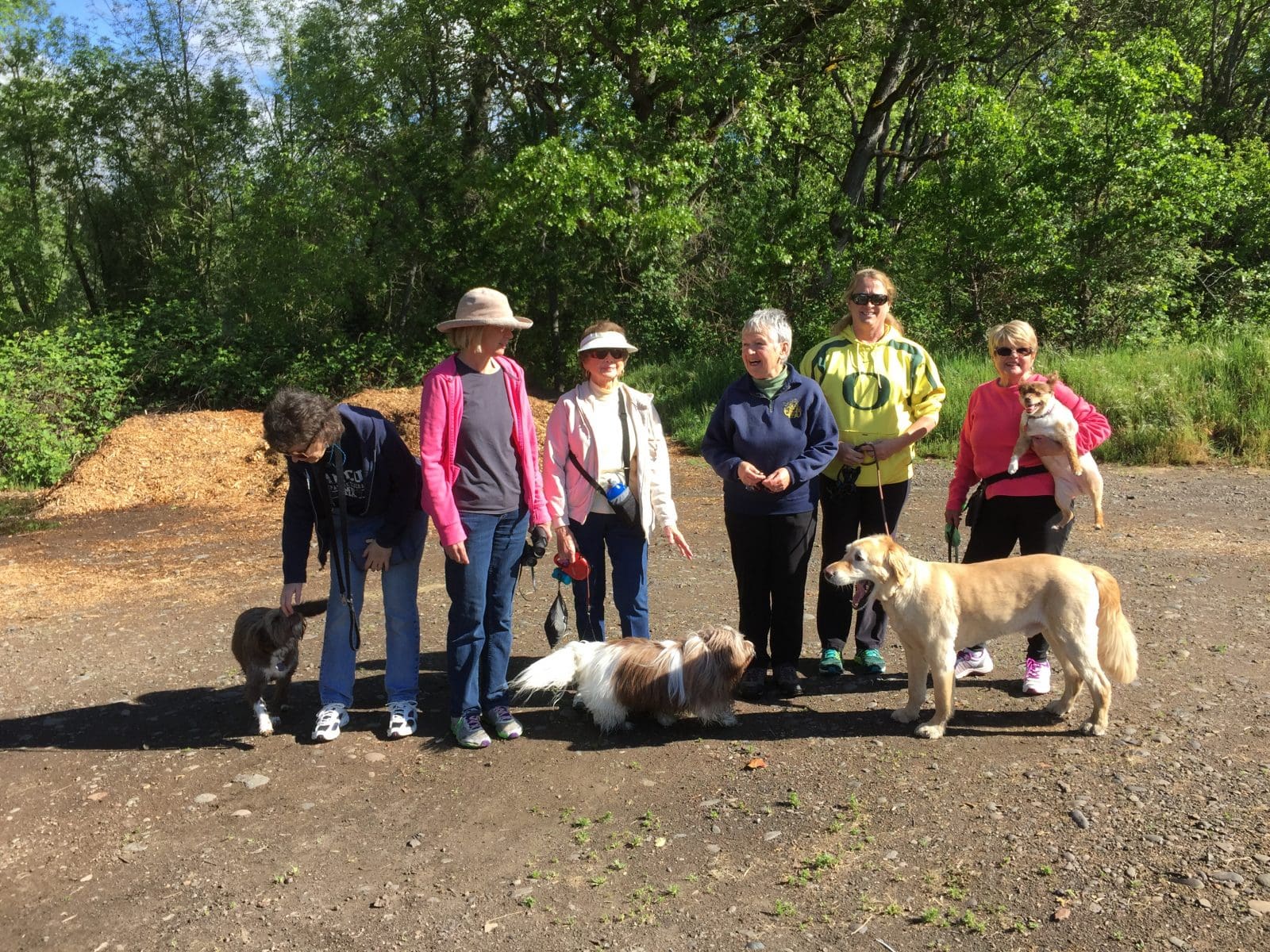 Seven ladies and four dogs enjoyed a walk on the Interpretive Trail at TouVelle State Park today. The weather was gorgeous and just the right temperature, a bit muddy in places, but not too bad at all. The dogs had a blast, running and playing, and checking back with us if they got too far away. A good time was had by all!