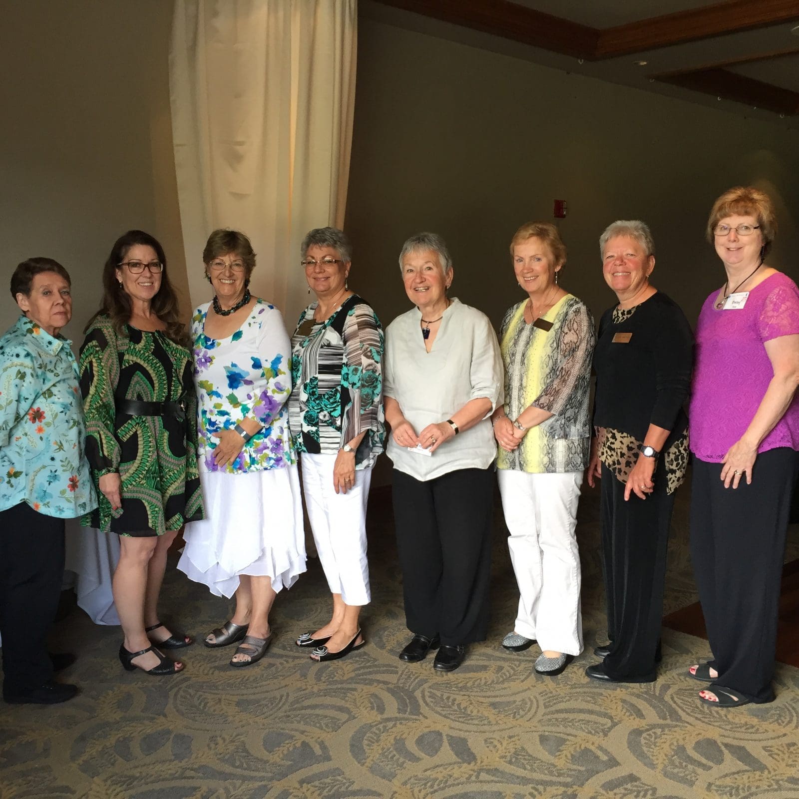 The members of the 2015-2017 Board from left to right: Linda O'Neal (Activity Chair), Ruth Hewitt (Luncheon Coordinator), Janie Monnette (Secretary), Maxine Williams (Past President), Renate Gyuro (Treasurer), Annette Godfrey (President), Viki Brown (Vice-President/Membership Chair) and Betsy Hase (Activity Coordinator).
