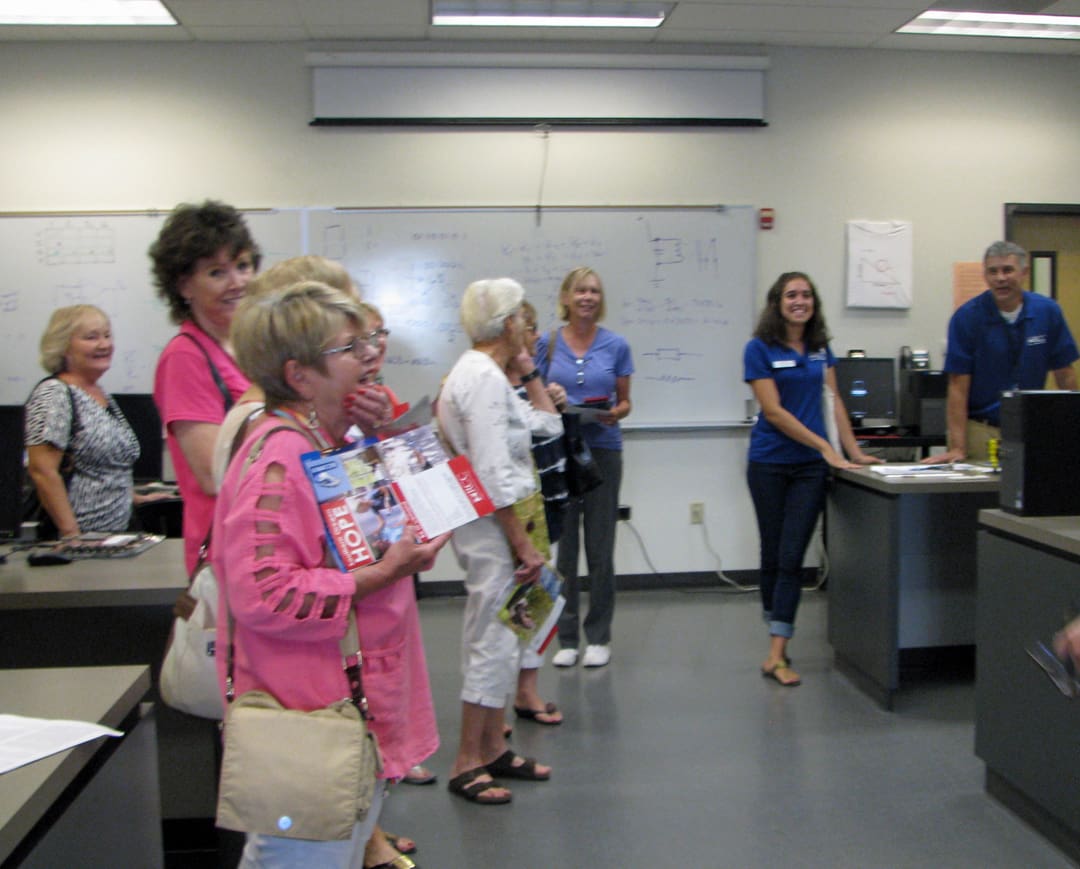 On August 2nd, twelve ladies toured the Rogue Community Foundation's Table Rock Campus in White City. An overview of various programs offered on the Campus was provided by our guide, Katy Wicks, an Admission Coach for RCC. Participants learned about the certificate programs that train students for " high demand" family wage employment right here in the Rogue Valley. We then toured the diesel program (did you know you can actually have your vehicle serviced there for the cost of parts) , electronics (robotics, circuitry, way over my head) and the emergency medical facility (they have "dummies" that can simulate medical emergencies) . Everyone learned more about this amazing facility located in our backyard.