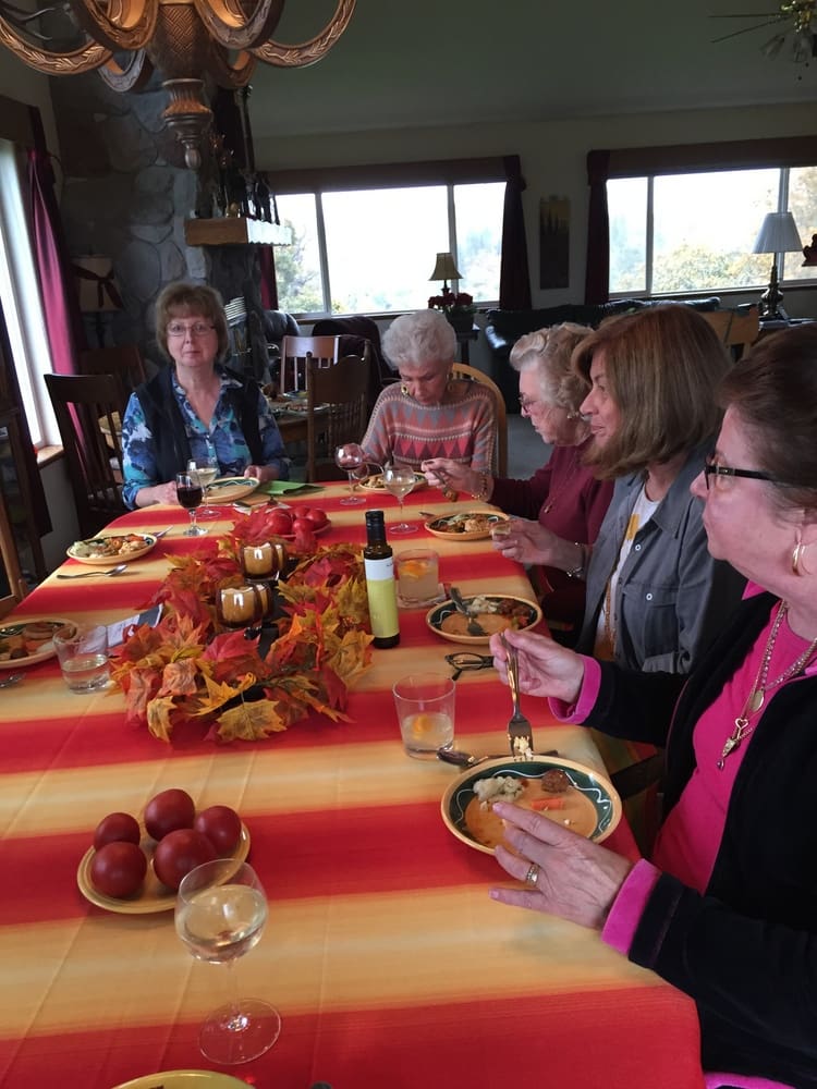 A cool, rainy day was perfect for enjoying the warm, festive tastes of Spanish tapas at the October Culinary Arts luncheon. Viki Brown was hostess and was joined by 8 members who each prepared a selected recipe. The cookbook used for this event was "Tapas: The Little Plates of Spain" authored by Penelope Casas. Shrimp in green mayonnaise and "Tipsy Goat" cheese were a few of the appetizers followed by lamb meatballs in brandy sauce, cumin-scented carrot salad, potatoes with capers and dill and a variety of other wonderful dishes. The food was accompanied by Spanish red wine, white sangria and fruit lemonade. An apple cream torte rounded out the menu. Each cook shared some tips about the recipe she had prepared and a few members shared personal experiences of enjoying tapas in Spain. Some leftovers were shared to take home to share with some hungry husbands. A fun and festive event. Thanks to all who attended.