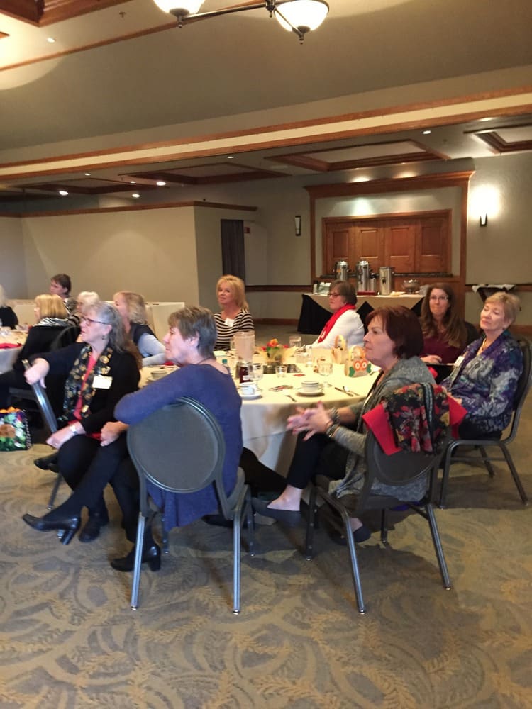 71 ladies, including 5 guests, filled the ballroom at Rogue Valley Country Club for a festive October luncheon. A Member's Market featuring 13 tables of handmade items, jewelry, books and other products kept the group busy doing both some looking and buying. Lots of talent and hard work was on display at many of the tables. Some business updates from the Board reminded us of the Classy Country Christmas Party scheduled for Dec. 3 at Ronky Tonk Saloon, noted a well-balanced budget and a wide variety of activities and volunteer opportunities to sign up for. Ten ladies in attendance were presented with a cute Halloween basket of goodies to celebrate birthdays in October and November. Thanks to Annette for the baskets and the thoughtfulness. We have three ladies who all share Oct. 17 as a birthday. An exceptional lunch featuring London broil, garlic mashed potatoes, salad bar, fresh fruit plate, veges, croissants and chocolate lava cake with fresh raspberry left everybody more than satisfied. An enjoyable way to spend a fall day. Thanks to all who attended.