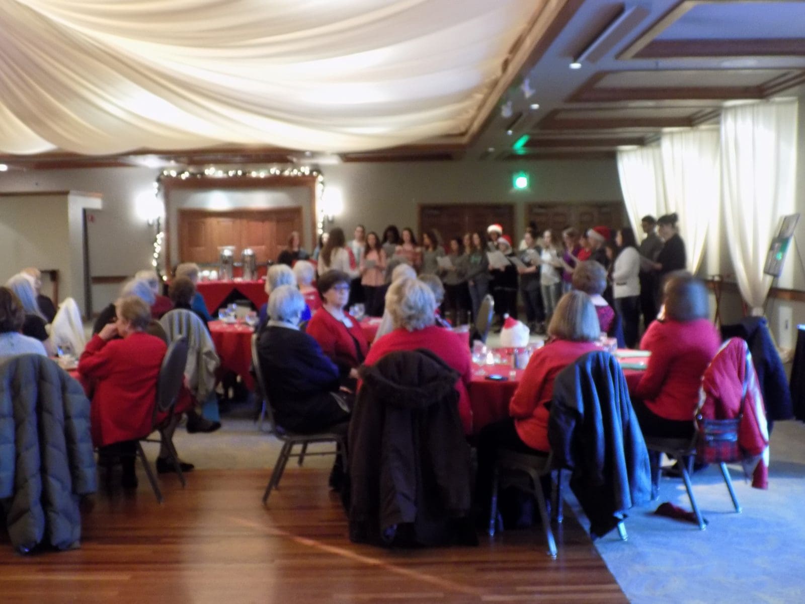The Eagle Point Women's Club 2016 Holiday luncheon was held on December 14 at the Rogue Valley Country Club and was a warm and spirited gathering on a wet, winter day. The choir from Eagle Point High School provided the entertainment with a variety of beautiful Christmas carols. The group even joined in for a sing along version of "We Wish You a Merry Christmas". The entire facility was decorated Christmas trees and lights and felt very festive. President Annette Godfrey, provided little birthday gifts to those celebrating Dec. and Jan. birthdays while the group sang Happy Birthday. Special thanks went out to the Christmas party committee of Debbie Tossie, Valerie Taylor-Crow and Mary Gorczewski who planned and executed a great party at Rocky Tonk Saloon. There are openings on the nominating committee for the 2017-2019 Board, the picnic planning committee and the 2017 Christmas Party committee and members can contact Annette if you are willing to serve on any of them. The Club needs your participation. An Italian-themed lunch topped off with tiramisu for dessert completed an enjoyable gathering.