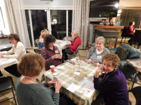 The Ladies Potluck & 3-13 group gathered at the home of Dawn Iliuiano on February 11. Member Cindy Parrott will be moving to Oklahoma at the end of the month so this was an opportunity for many of us to say goodbye. As usual there was a wide assortment of yummy dishes for dinner. We then rotated among 4 tables for the card game. The chair of our group, Annette Foster was the big winner with a low score of 28. Afterwards we shared a few mouth-watering desserts, goodbye hugs and best wishes to Cindy.