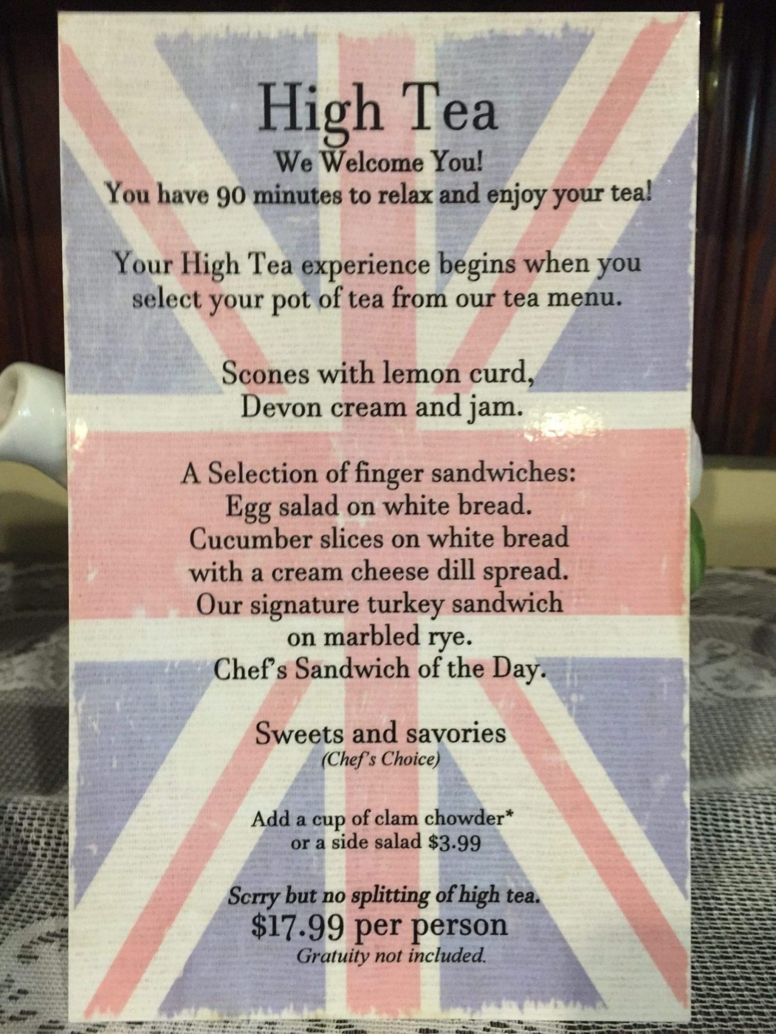 What a wonderful day the Ladies Outings group had. We arrived at The Teapot on Wheels around 10:30 where everything was ready for us. Of course, the first thing was to find the hats just perfect for us. Then we were guided to sit down where we immediately starting selecting the perfect exotic tea for us. Then started the parade of food, and I do mean parade!! First came the scones, then the tea sandwiches with some custard tarts, then – – – , then – – – – and, of course, not to leave out, the fabulous sweet treats. You got the idea, it was a day of eating, talking and laughing together. In other words, it was wonderful, but, we did miss Elaine.