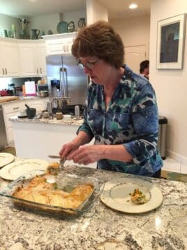 Betsy Hase serves the butternut squash lasagne that she prepared
