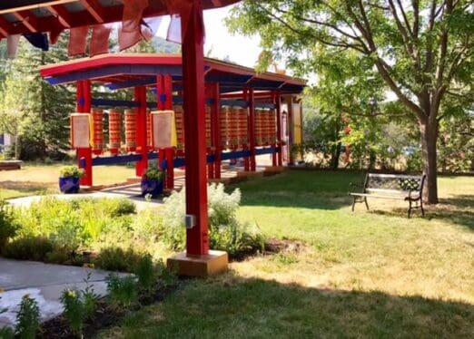 We had nineteen ladies brave the heat to attend the tour of the Tashi Choling Buddhist Center for Buddhist studies Their mission statement says, "Tashi Chöling provides a place of spiritual refuge and an established program of study and practice in order to preserve the authentic living tradition of Tibetan Buddhism for the benefit of all beings." It was a fascinating temple and tour. It is in a beautiful location in the mountains south of Ashland. We enjoyed a picnic lunch in the shade of trees overlooking beautiful vistas.