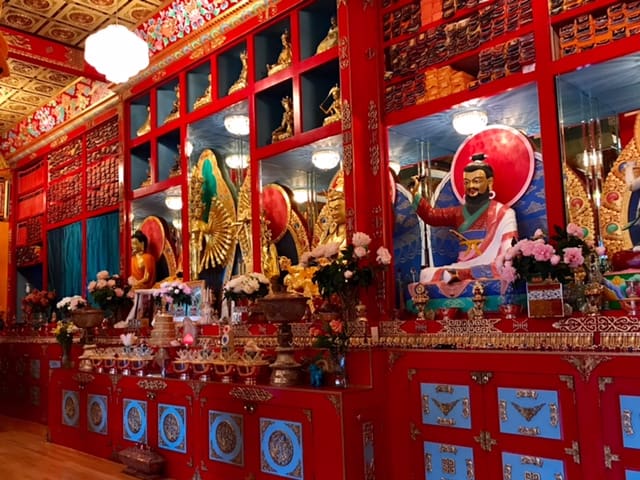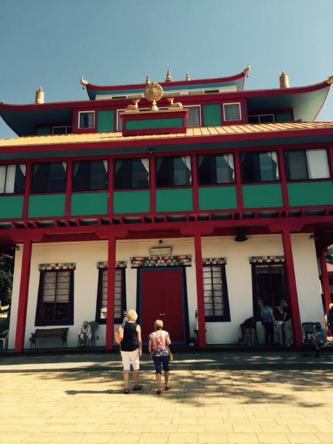 We had nineteen ladies brave the heat to attend the tour of the Tashi Choling Buddhist Center for Buddhist studies Their mission statement says, "Tashi Chöling provides a place of spiritual refuge and an established program of study and practice in order to preserve the authentic living tradition of Tibetan Buddhism for the benefit of all beings." It was a fascinating temple and tour. It is in a beautiful location in the mountains south of Ashland. We enjoyed a picnic lunch in the shade of trees overlooking beautiful vistas.