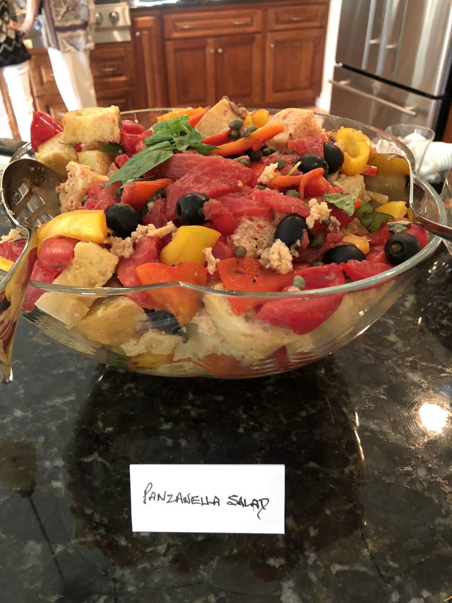 13 wonderful home cooks gathered at the home of Carolyn Hein on Aug. 9 to share and sample a variety of dishes featuring fresh food products available in the Rogue Valley. Jan Griffin served as our gracious co-hostess. Brilliant red raspberries and strawberries topping a dark green spinach salad and an array of colorful vegetables in a panzanella salad, were just a few of the beautiful and scrumptious foods that were enjoyed by all. Pairing fresh cantaloupe with roast chicken in a finger sandwich was a surprising hit . Each cook shared the secrets of her dish including any modifications made to the original recipe. We finished the meal with balsamic-sauced bing cherries with sliced fresh peaches. A big thanks to Carolyn and Jan for all of their working in organizing and hosting.