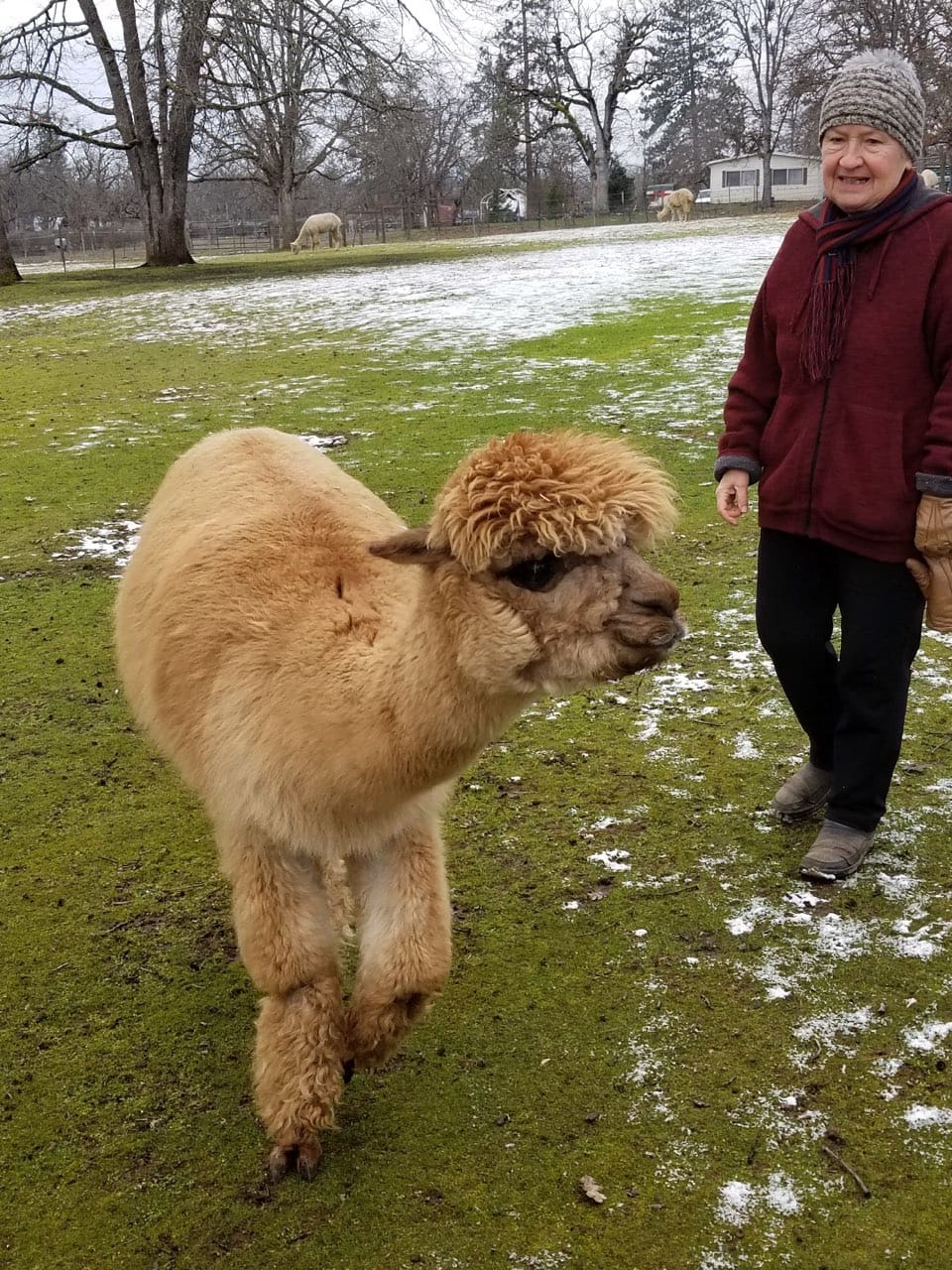 February 5, 2019-Tour of Alpacas at Lone Ranch & lunch at Mac’s Diner (with snow!)