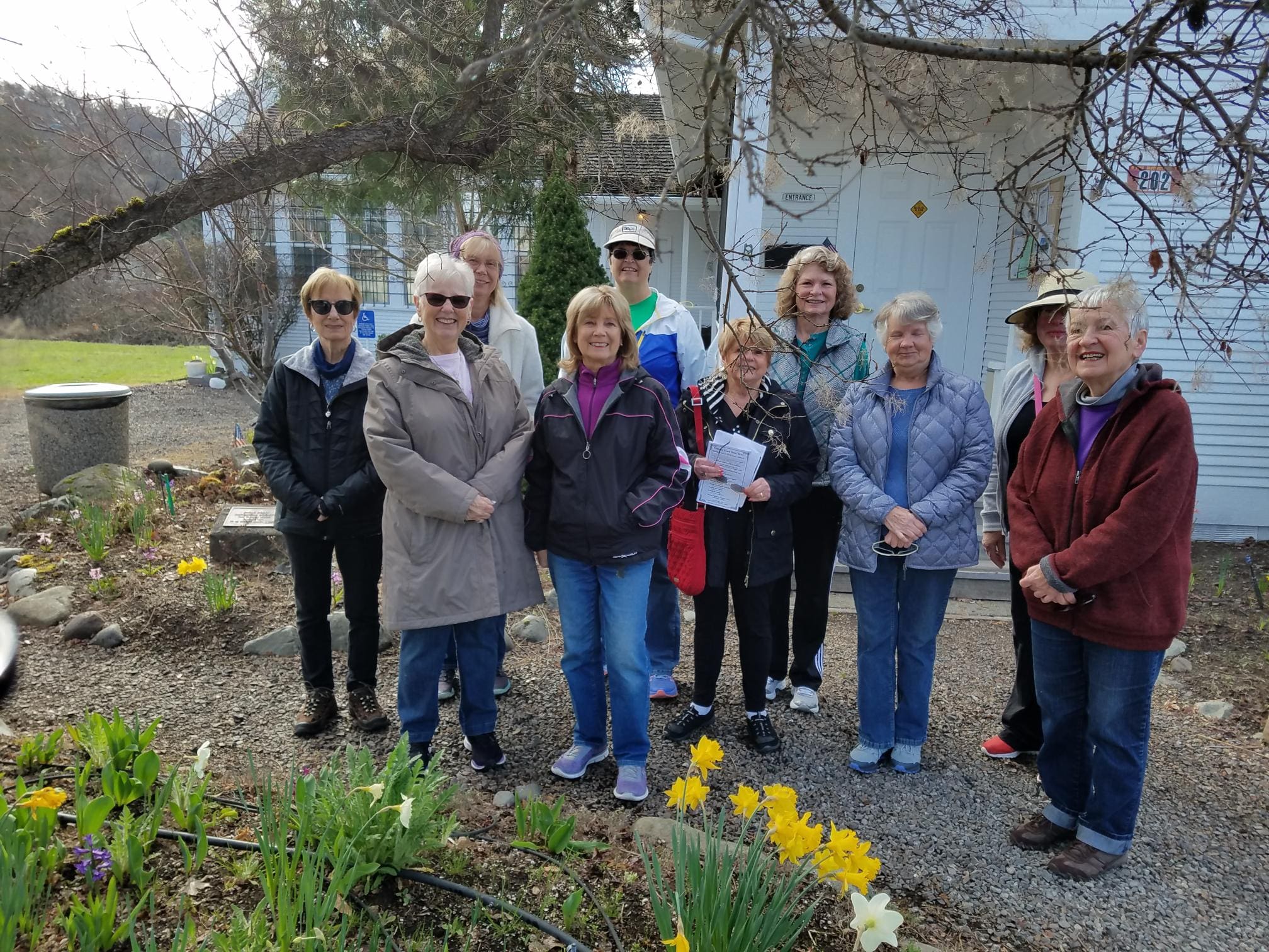 Walkabout rides (or walks?) again! Yesterday, Friday March 29 at 9:00 a.m., was our first just-under-3-mile walk, focusing primarily on the historical parts of Eagle Point. We started at the covered bridge, moved up past the museum and flour mill, past historic residential houses, and then back through downtown, stopping at the Senior Center and finally Ed’s Oasis. Many of the buildings found in the historical pamphlets were no longer there, and many addresses had changed. But many of the buildings still exist. We ended up at Barbwire Grill for breakfast, and a good time was had by all!