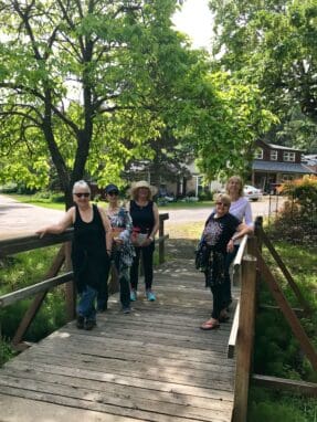 Six of us carpooled into Jacksonville, parking in the lot next to the library. We enjoyed a leisurely walk up to the cemetery, which some of us had never seen. The rest of the walk was around the downtown area, stopping at the Mustard Seed for brunch, then shopping along the way back. We met some nice people and dogs, and even had a confident kitty accompany us the whole way in the cemetery. A good time was had by all!