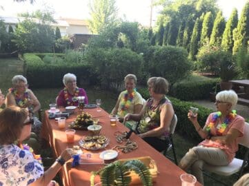 Our July Ladies Potluck was held at the home of Annette Godfrey which was transformed into a Hawaiian playland. Tropical drinks were raised and flowers, shells and leis were part of our apparel. Appetizers were enjoyed in the Godfreys’ lovely backyard and our palates were treated to yummy Hawaiian dishes. A lively game of 3-13 followed dinner and afterwards we enjoyed tropical desserts; another successful and enjoyable evening.