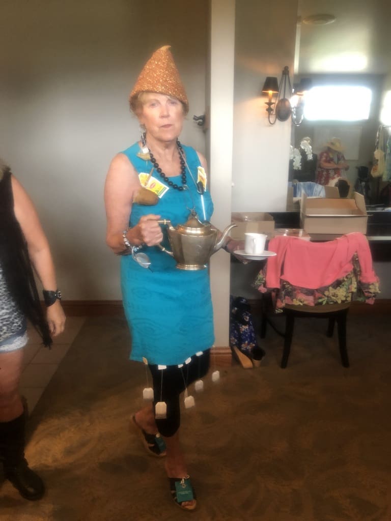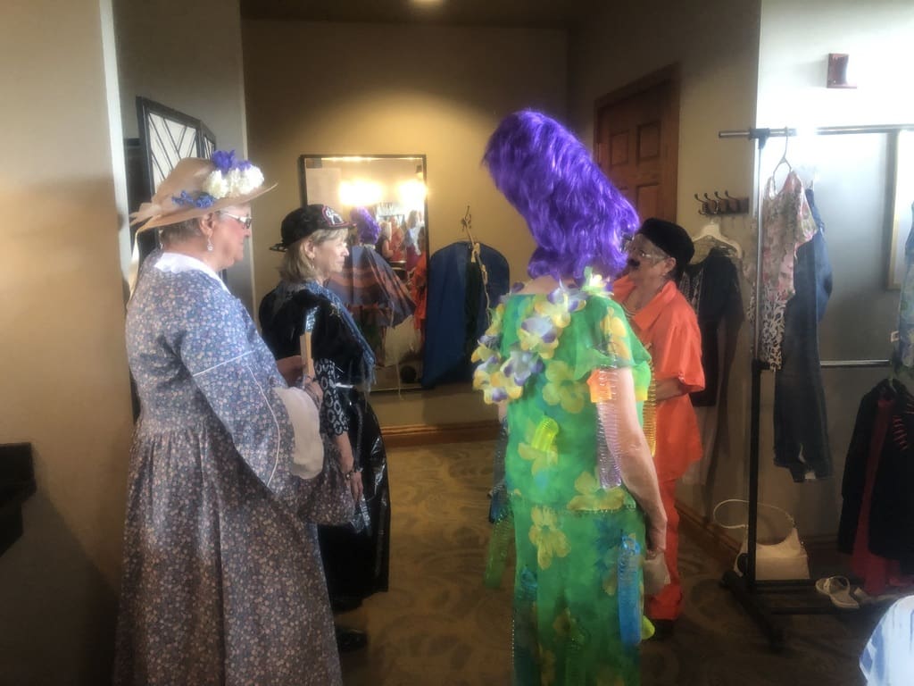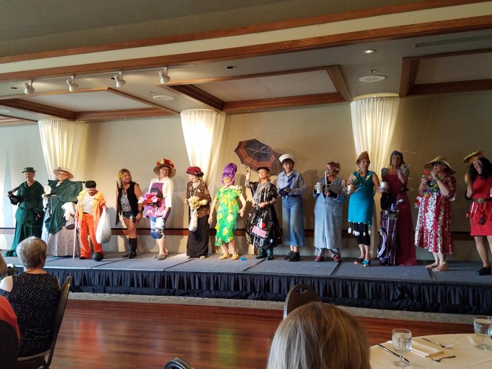 Ask 15 older, adult women to dress up in costume and strut their stuff in front of a large group of friends and you have the recipe for a zany luncheon program. Each model prepared a costume based on a chosen theme and Maxine Williams, fashion show emcee, delivered a descriptive commentary as the model strolled down the "runway". Each model was serenaded by a chosen song expertly played on accordion by Richard Gyuro. Ida Tolime had slinkies flying and Bonnie Scriba had the air filled with "tiny bubbles". A big thanks to Maxine for all of her help and effort, to all the models and to Richard. We're never too old to be silly and have a good laugh. Birthdays were celebrated, Board reports given and a wonderful lunch enjoyed by all. We had a number of guests in attendance, two of whom joined the Club before leaving the luncheon. Remember the Members Market coming up at the October luncheon.