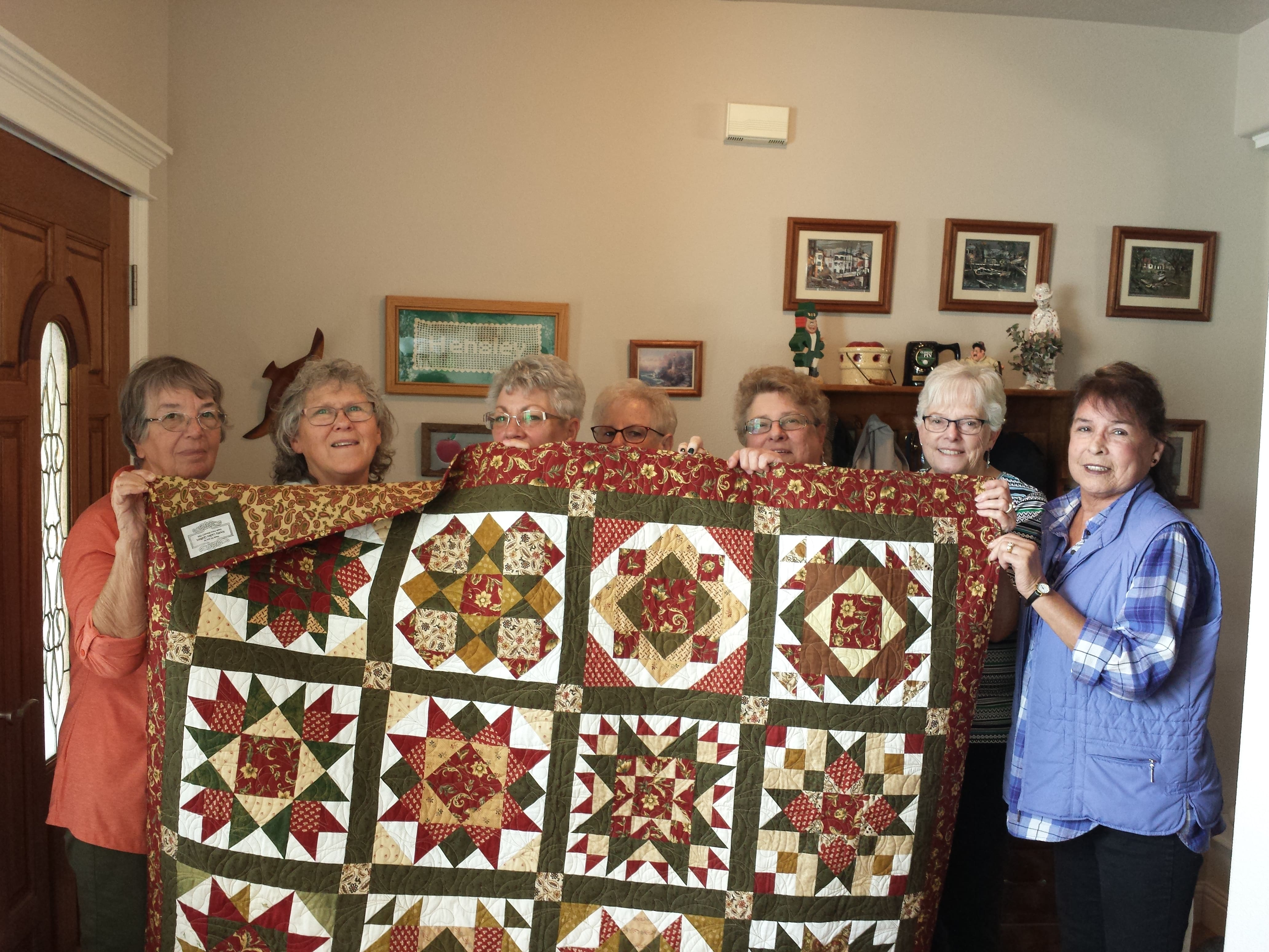 The Knotty Ladies met at Helen’s home on October 2. The big news of the day was that our beautiful donation quilt is finished. The quilting was done by Grandma Mitchell and the binding was added by Dora. It will be delivered by Bonnie to an Eagle Point person who has been the victim of a fire.