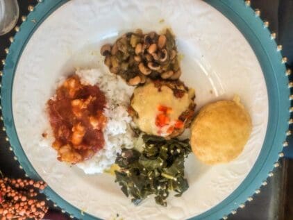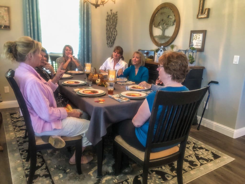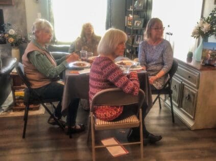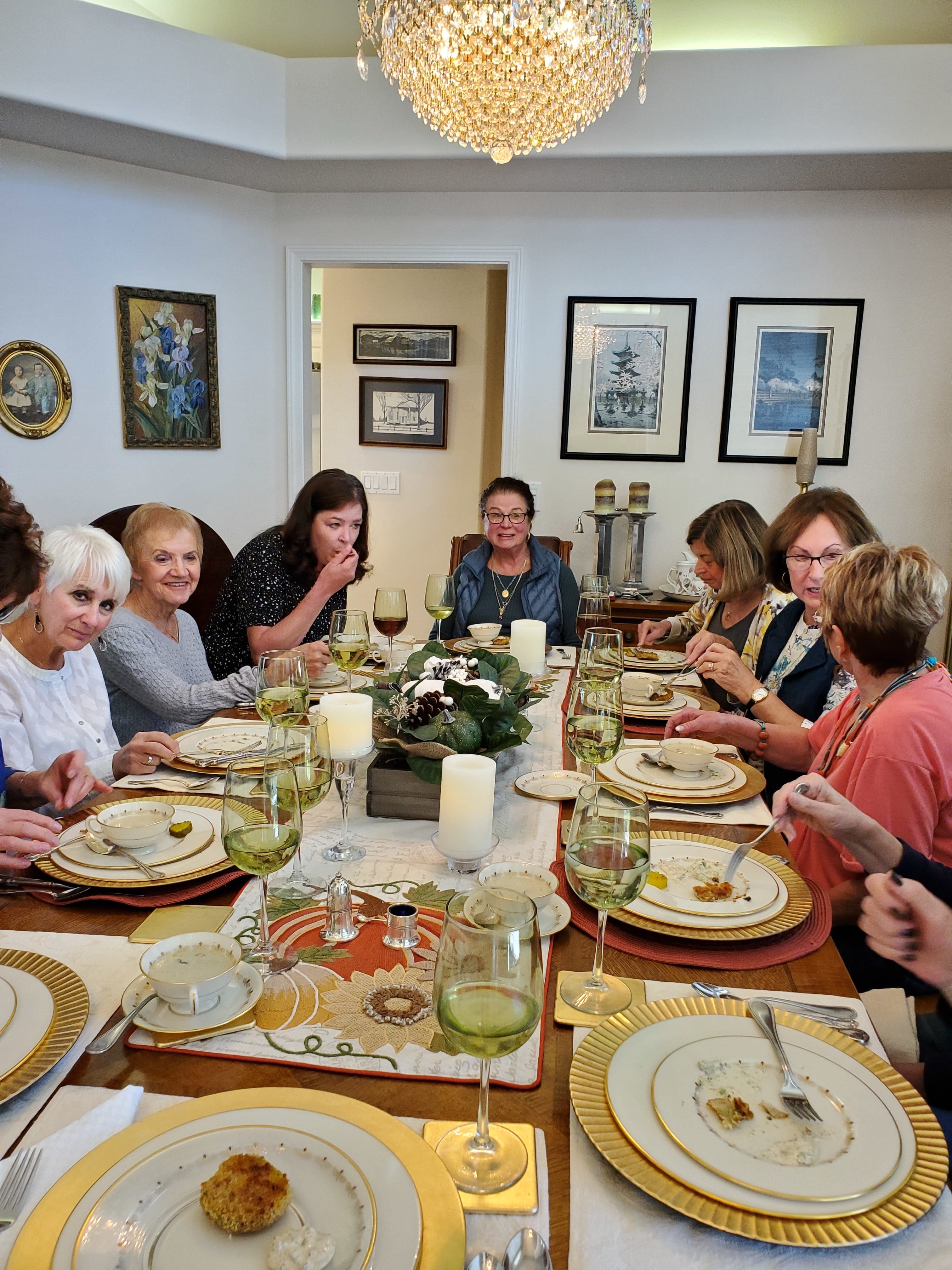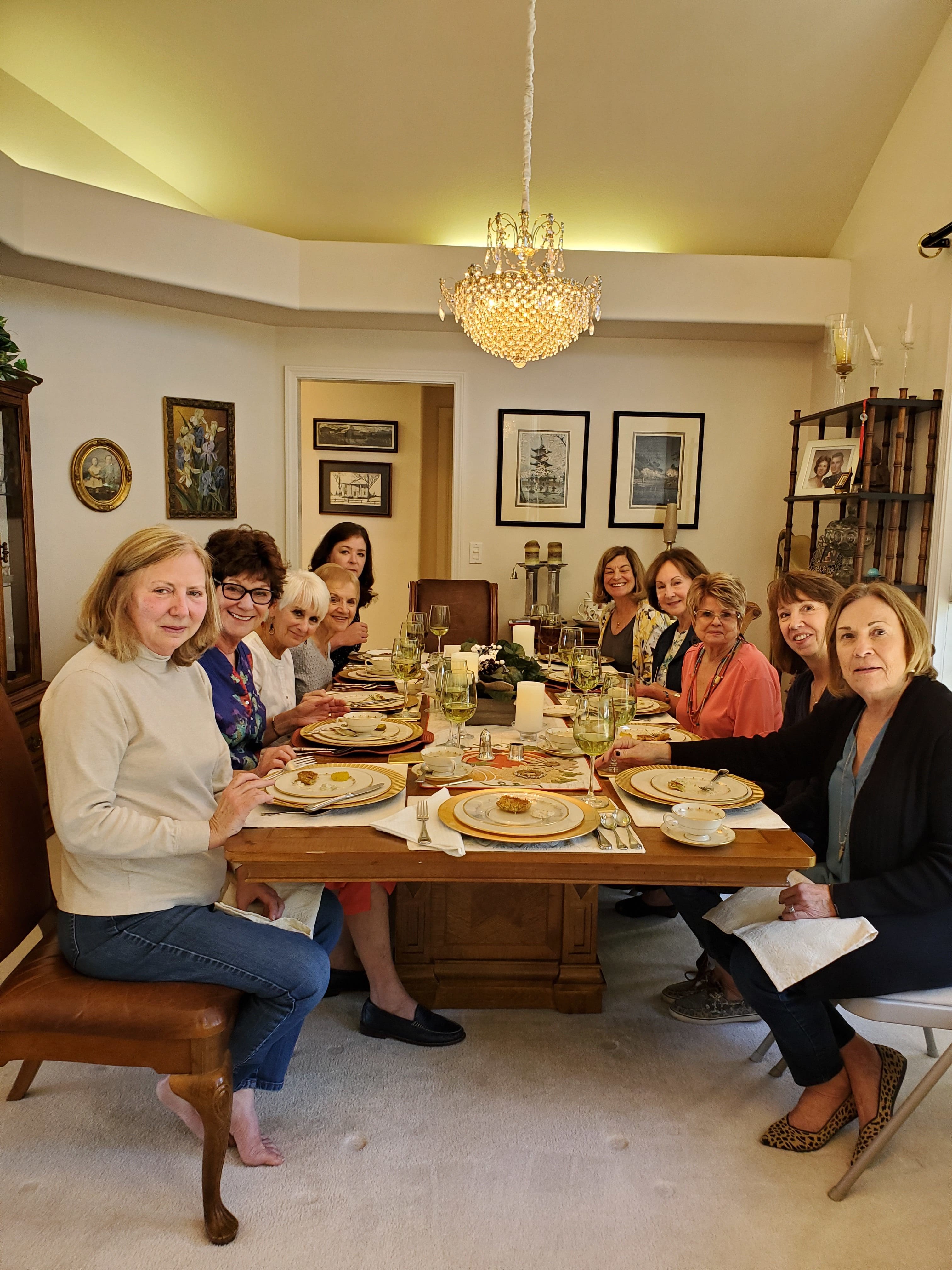 24 wonderful cooks gathered at two homes on October 10 to savor a lunch featuring fine Southern Cuisine and to learn some history of cooking influences in that area. Linda Haynsworth-Kruger and Susan Watson planned the menu, selected the recipes and hosted a group of 12 at Linda’s home. Joyce Lingren and Viki Brown coordinated the same menu for 12 more at Joyce’s home. Starting with boiled peanuts and pimento cheese we worked our way through shrimp creole, crab cakes, hoppin john, Carolina Gold rice and more, finishing up with hummingbird cupcakes. Lemon blueberry sweet tea, mint juleps and mint julep tea were the special beverages that accompanied the meal. We all appreciate the time and effort expended by the hosts and the special stories of food and life in the South shared by Linda. Thanks to all who participated.