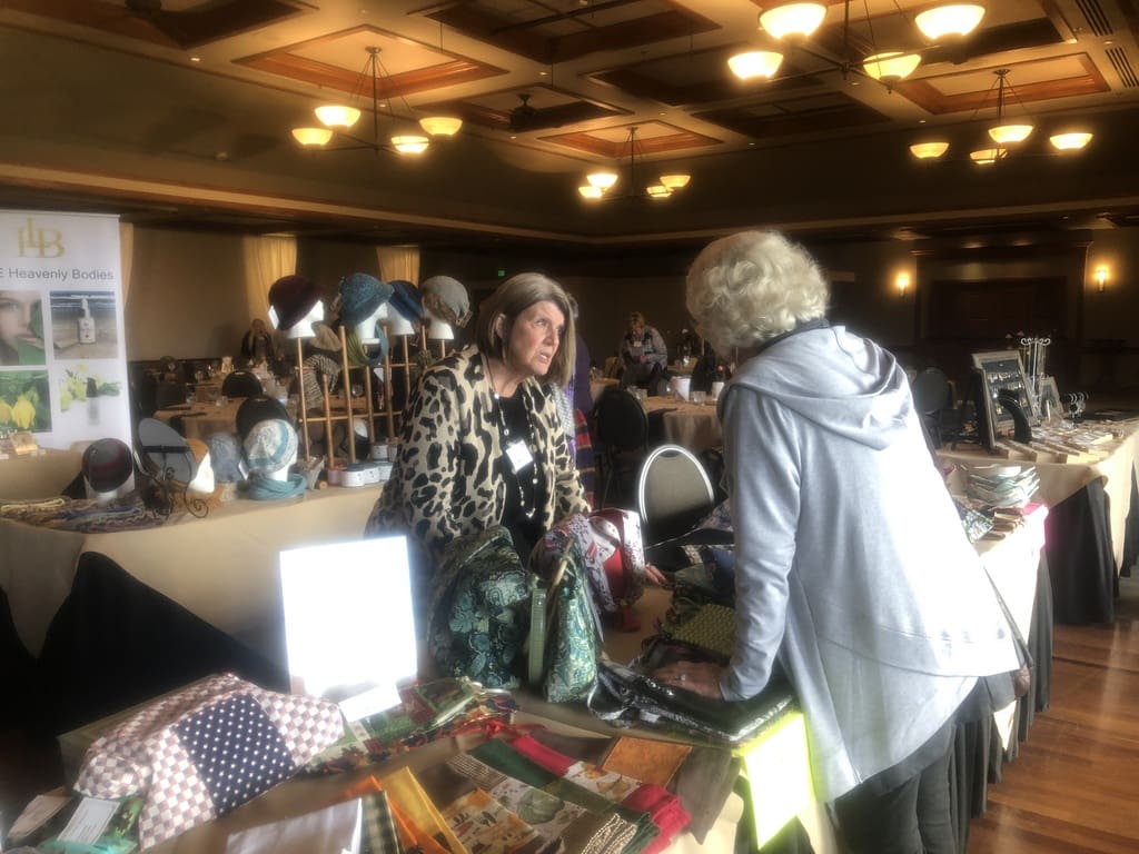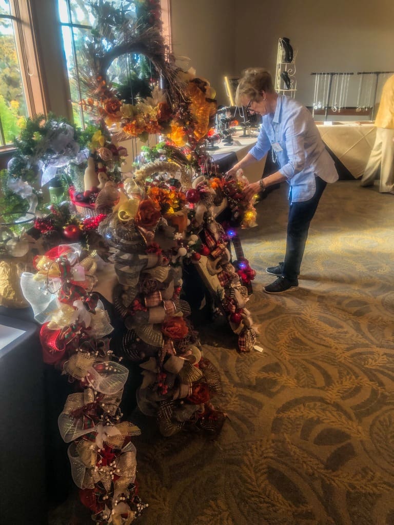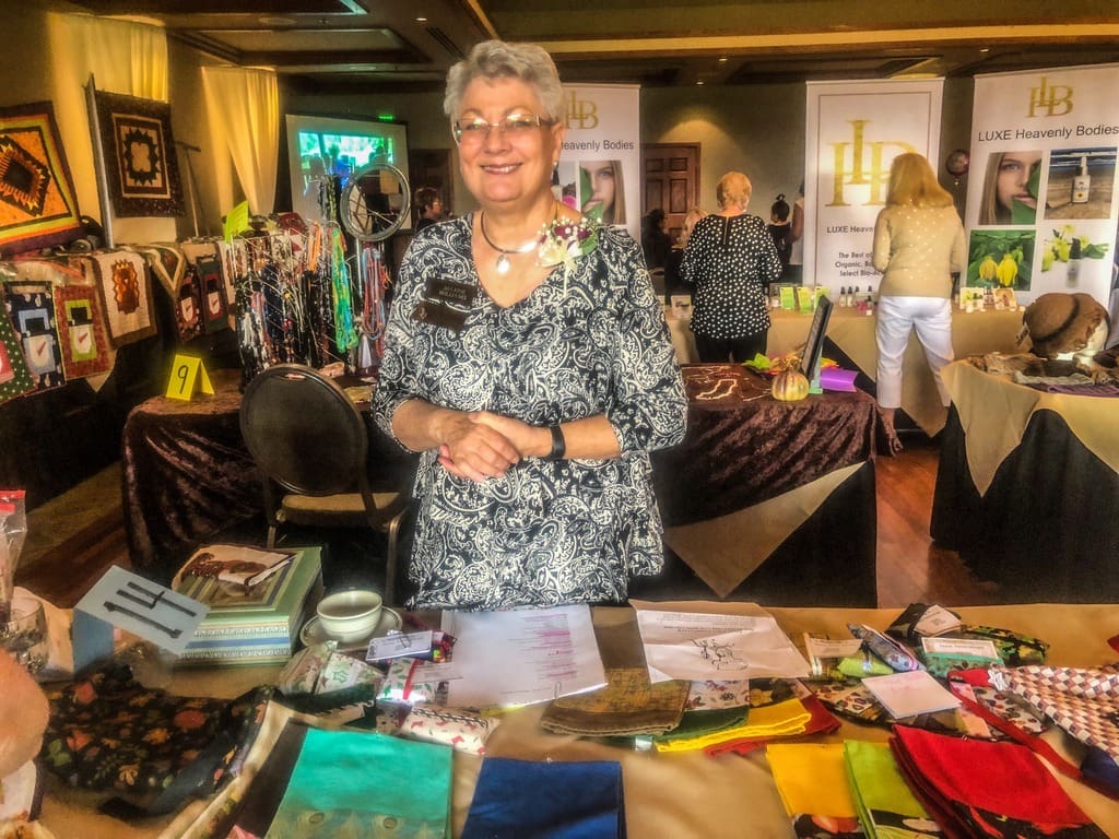 Did you think it was possible to get 92 women, 12 lunch tables and 13 vendor tables in the ballroom at the RV Country Club? Well we did it at the October 2019 luncheon and it was great. Trudi Eyraud coordinated the Member's market, Maxine Williams coordinated the luncheon and Annette Godfrey provided the Halloween centerpieces. Thanks to all of them for their good work. The vendors had a wide variety of products, many of them handmade and a pleasure to shop for. We had a short business meeting, celebration of Oct./Nov. birthdays and an enjoyable lunch buffet. All of the activity coordinators in attendance were honored and thanked for their work with a beautiful fresh flower corsage donated by Kathryn Wallace from Heaven Scent Flowers in Eagle Point. We greeted four guests and four new members attending their first luncheon. Another great EPWC event.