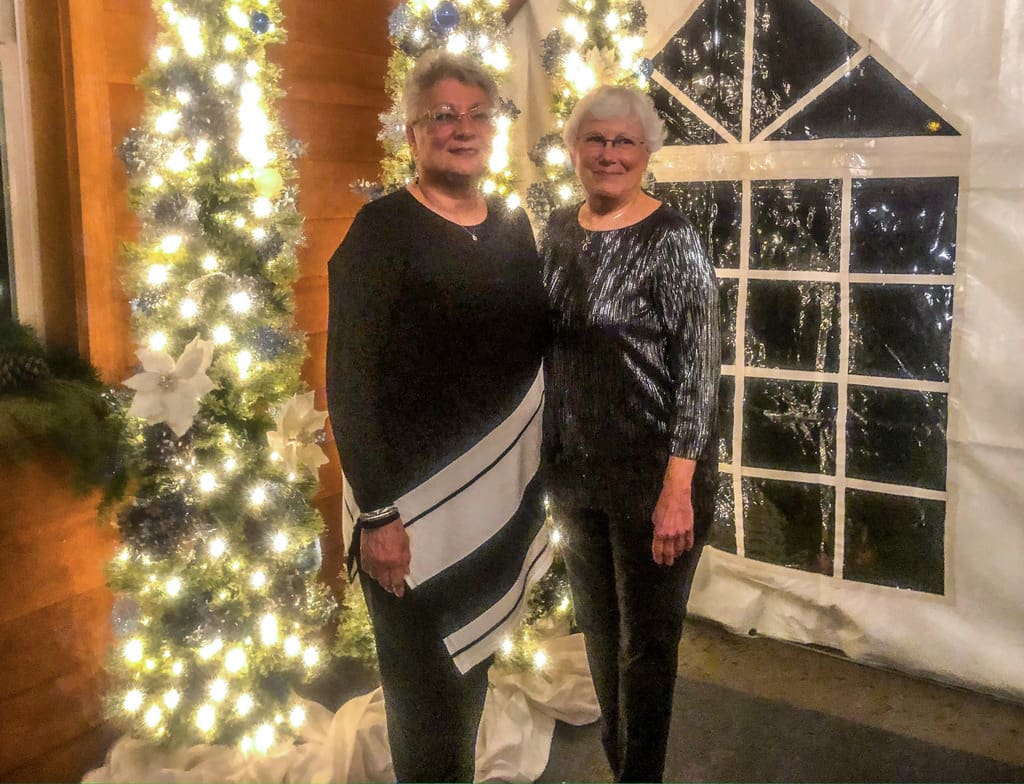 It was a mild December evening for our annual Classy Christmas Party which was held in the Pavilion at the Eagle Point Golf Resort for the second year. Lots of cozy heaters were placed around the room and service from two bars in the room kept everybody warm and comfortable. Once again some ladies dusted off their fur coats, jackets or stoles and enjoyed reminiscing about the grandmothers, mothers and other relatives who had handed the furs down to them. Sparkling Christmas trees and decorated tables and chandeliers turned the room into a winter wonderland. Carla Takemoto once again provided well-selected Christmas music for our listening pleasure. A few folks even took to the dance floor for some spins with their hubby. The dinner buffet featured a winter feast and cheesecake and chocolate cake finished the meal on a sweet note. There was plenty of time for socializing and getting acquainted with some newer members who joined us. A fun evening made possible by the efforts of Sharyn Close, Carla Takemoto, Ann Grossman and the rest of the Club Board. Thanks to all who helped and who attended.
