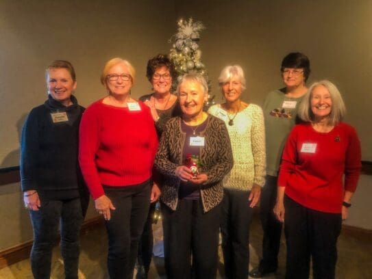 72 EPWC members and guests filled the ballroom at the Rogue Valley Country Club for our December luncheon. The room was a literal sea of red clothing as everyone brightened the cold, foggy day. We all enjoyed some social time, the usual business meeting and a scrumptious buffet lunch. The menu included scalloped potatoes, roast turkey, tossed salad, roasted brussels sprouts, fresh fruit and a tangy lemon bar. Each table featured a hand-crafted centerpiece crafted by member, Annette Godfrey, which were distributed to lucky members through a drawing. We celebrated December and January birthdays and welcomed new members and guests. The program featured local musician, John Hollis, who entertained us with a few jokes and vocal and guitar Christmas music. A group of 5 ladies moved up to a corner of the stage to add a female chorus to the music. Lots of happy holiday wishes were shared as we prepared to finish the rest of our day. Happy Holidays to all and looking forward to an outstanding 2020 together.
