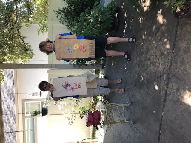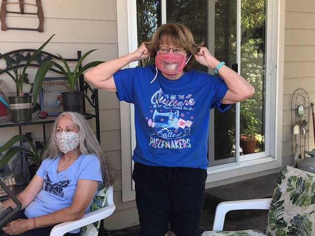 The masked Piecemakers met at Rosenelle's on July 1 for a lesson on how to make a Cathedral Window Quilt block. Rosenelle was our instructor extraordinaire. She worked very hard to make it easy for us to socially distance ourselves and we wore our masks when appropriate. As always, we had a few show & tell's. Linda shared some of the masks she has made, some for kids and one with a clear panel over the mouth area for lip reading. Rosenelle & Linda shared their latest embroidery class projects. These were just stunning.