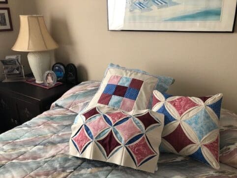 Elaine shared her finished pillow top using the alternate Cathedral Window pattern. She also made a nine patch pillow top. New pillows for the guest bedroom!