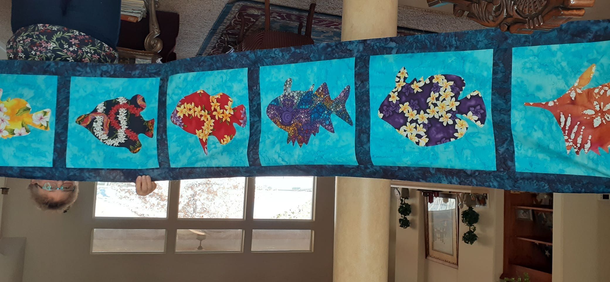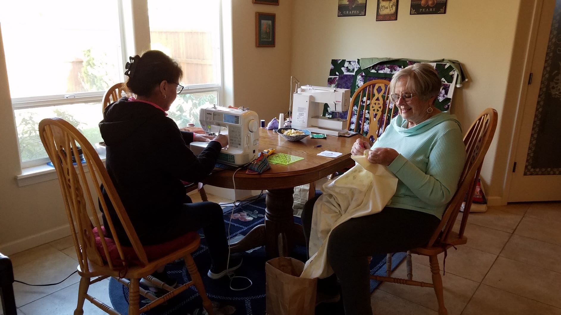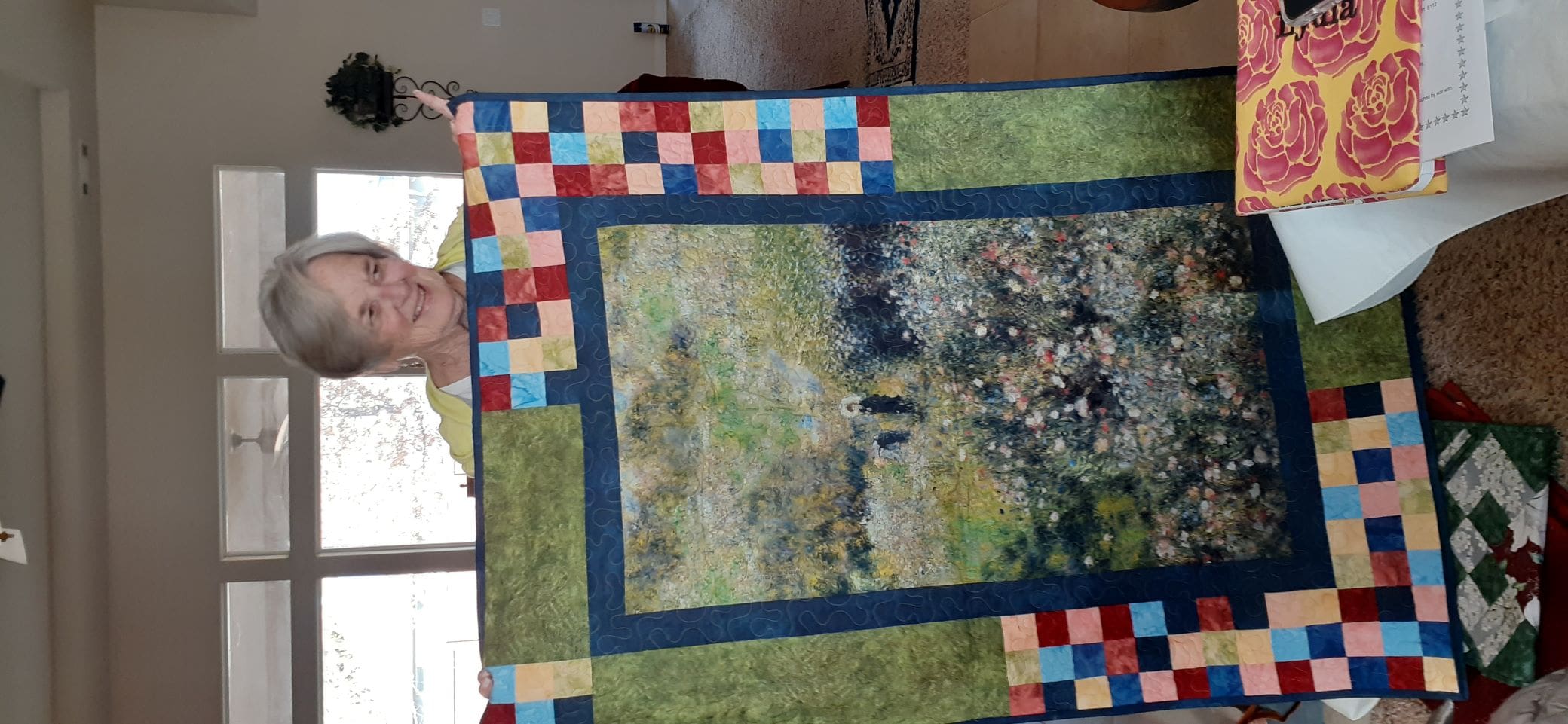 at Dora’s home again & have a sew along making Self binding baby blankets. We discussed