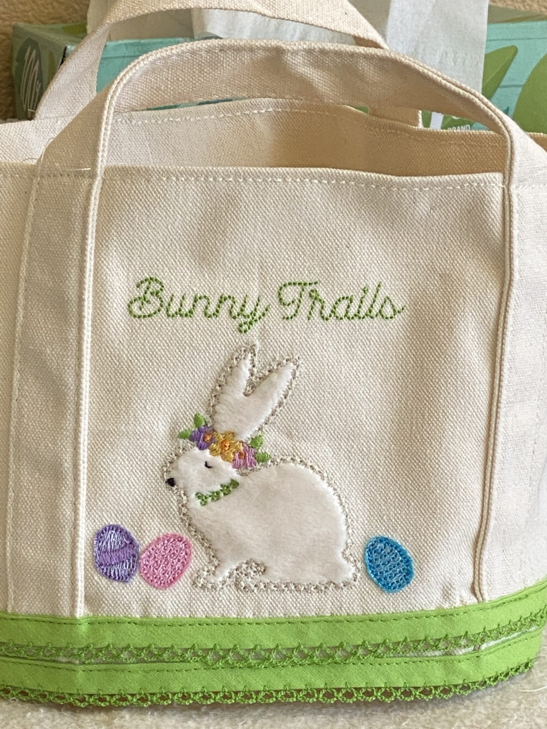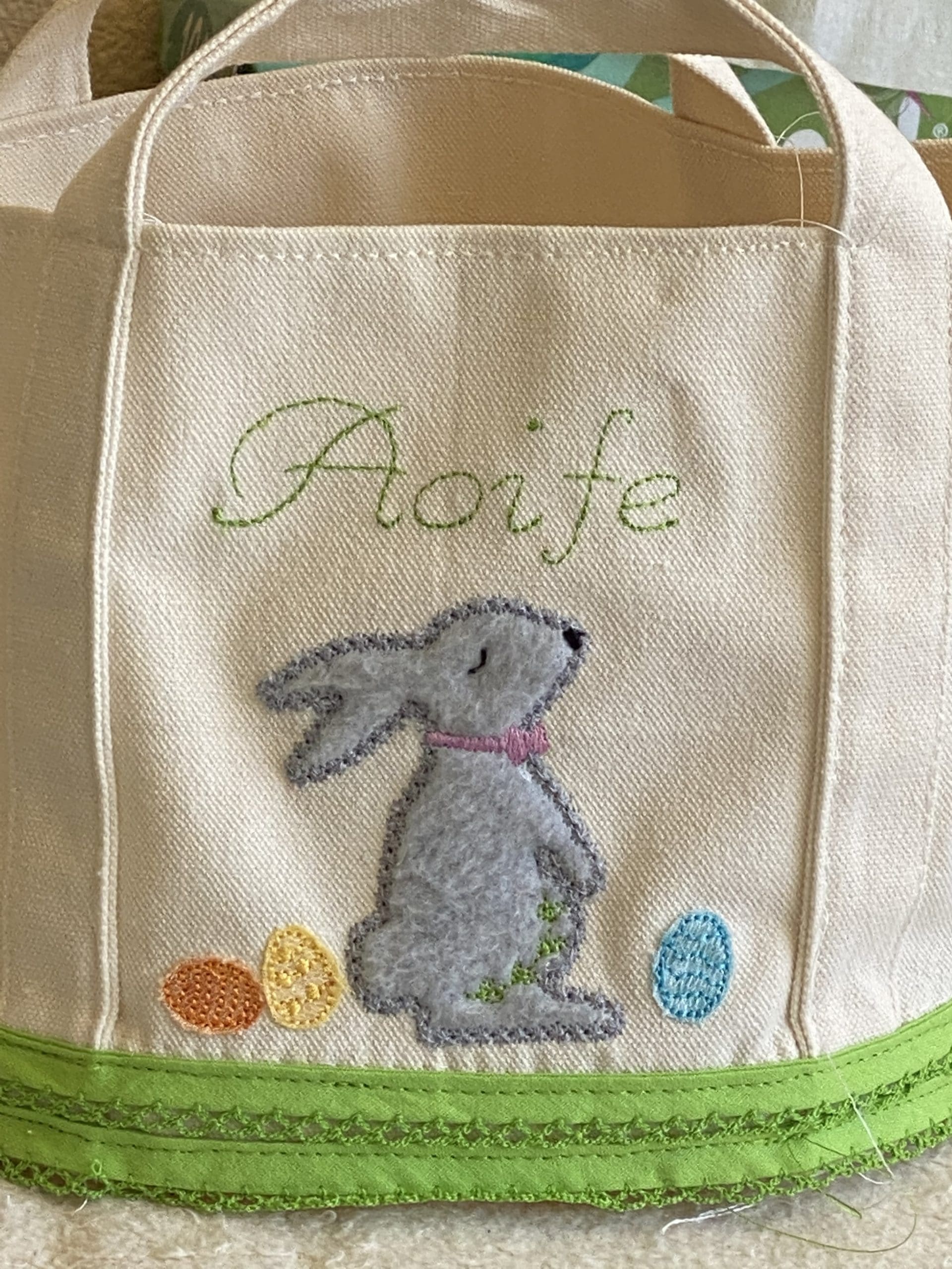 During lunch, we had a few shares. Linda shared pictures of two Easter Bunny bags she made. I am sure the kiddies loved them! Elaine also made a couple of bags – for herself! The dyed fabric is from last year's meeting when Kelly taught us how to dye fabric.