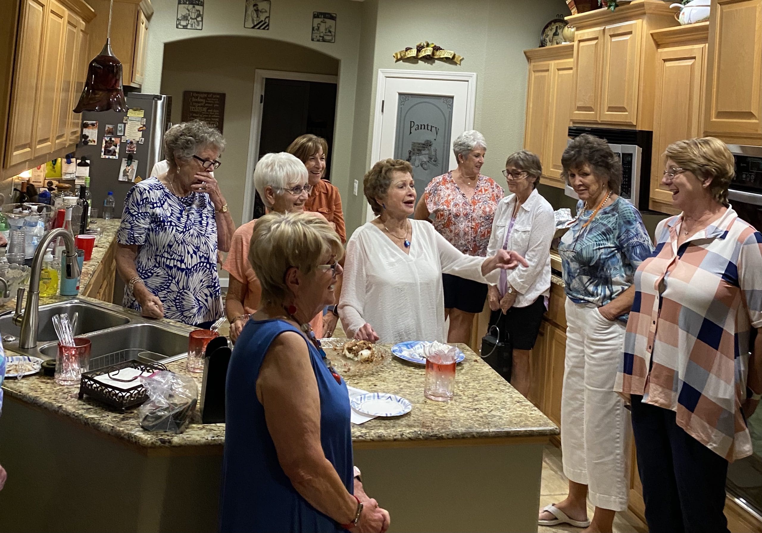 Sandi Smith hosted the Ladies Potluck/3-13 group on July 10. Nineteen ladies came over to enjoy each other’s company and get back into the swing of our monthly gatherings. New club member Lorissa Nichols came to her first activity group and brought her neighbor Debra Aguilar who, after spending time with us and learning 3-13, decided to join the EPWC. We shared great appetizers, dinner and desserts and laughed a lot. First place winner of the night was visiting former member Joan Devlin with a low sore of 48, followed by Annette Foster’s 50, then Terry Sheldon’s 73, Wyn Lewis’ 78, Marcia McIntyre’s 79, Sharyn Close’s 93 and Aleli’s 113. Brigitte Lemmerman took home the quarters with a high score of 275. We also collected $70 for the Eagle Point Food Project. Our next gathering will be August 14 at the home of Ida Tolmie.