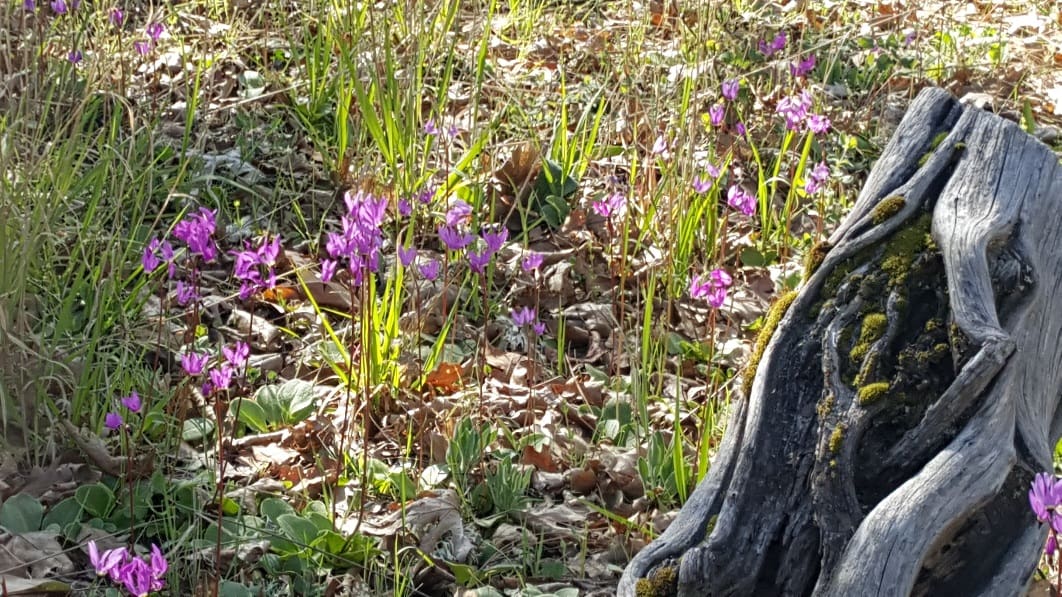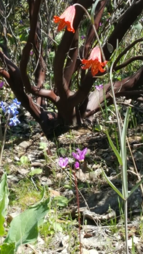 Eight hikers enjoyed the exercise, wildflowers, and camaraderie while hiking several trails in Jacksonville Woodlands April 16, 2021. Since we haven't hiked very often during Covid, we had a workout on some of the steeper inclines. The red Fritillaria and lavender Shooting Stars were among the wildflowers viewed during our hike.