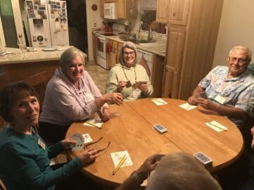 The Couples 3-13/Potluck group got off the ground after a 9 month hiatus on April 16th. 24 couples enjoyed themselves at the homes of hostesses Viki Brown, Sandi Smith and Aleli Lawson, the new Coordinator who has stepped into Gayle Schanck’s shoes. Currently there are 39 couples on our roster; it’s an active evening the 3rd Saturday of each month with great food, a competitive card game and a chance for the husbands to be part of the fun we have in the Women’s Club! We will keep the group rotating around 3 homes each month. If you are interested in joining the group, please contact Aleli Lawson.